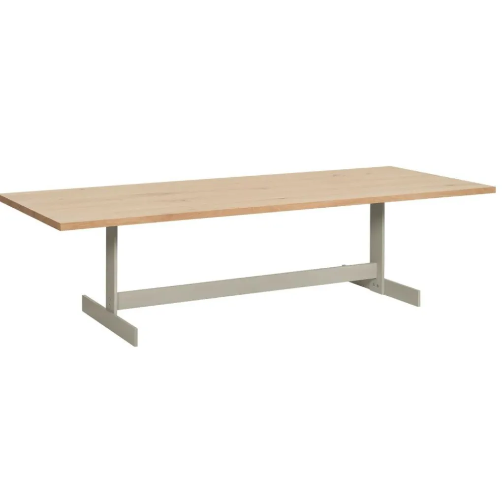 Eine großformatige Tischplatte aus Eiche trifft auf ein schlichtes, farbiges Gestell: Der e15 TA23 Kazimir Esstisch ist ein wahrer Hingucker. Die lange Tafel ist einladend und heißt Gäste, Freunde und Familie willkommen. Die Tischplatte aus weiß pigmentierter Eiche tritt in einen spanenden Austausch mit dem Gestell aus pulverbeschichtetem Aluminium, das aus zwei Seitenteilen und einer markanten, tief liegenden Querstrebe besteht. Der Mix der beiden Materialien Holz und Aluminium verleiht dem Tisch einen mutigen und durchdachten Look. Inspiration für den e15 TA23 Kazimir Esstisch fand der Designer von den Kompositionen des Suprematismus eine Art des Konstruktivismus, die das Zusammenspiel von Form, Größe, Material und Farbe in den Vordergrund stellt. Der Esstisch ist 200 cm lang und 100 cm breit. Seine Höhe beträgt 75 cm. Er eignet sich sowohl für Privaträume als auch für berufliche Kontexte, beispielsweise als zentraler Arbeitstisch in einem Büro oder als Besprechungstisch.