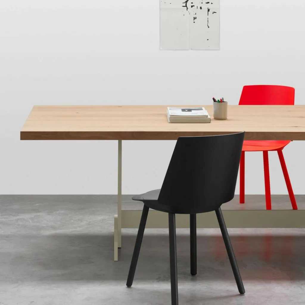Eine schlichte Silhouette und ein mutiger Materialmix machen den e15 TA23 Kazimir Esstisch von e15 zu einem Allrounder mit gestalterischer Finesse.