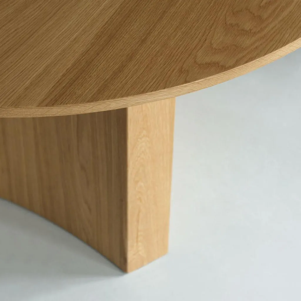 Ein dreieckiger, harmonisch abgerundeter Sockel dient dem Bue Esstisch Ø 120cm als stabile Basis. Sie gewährleistet beste Standfestigkeit. Noch dazu bietet der Bue Esstisch Ø 120cm viel Beinfreiheit. Die runde Tischplatte sorgt für einen ansprechenden Kontrast. Der Bue Esstisch Ø 120cm wird aus Eichenfurnier gemacht. Die Oberfläche ist pflegeleicht: Essensreste, Staub und anderer Schmutz können mit einem feuchten Tuch entfernt werden. Für die Montage des Bue Esstisches Ø 120cm sind nur geringe handwerkliche Fähigkeiten nötig: Der Sockel wird mit einer Zwischenplatte verschraubt. Anschließend wird die Tischplatte auf dem Gestell befestigt.