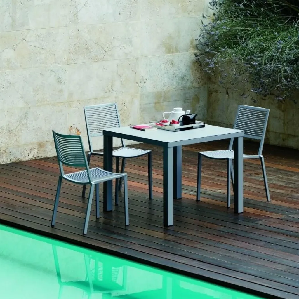 Zum anderen wäre das aber gar nicht nötig, denn der Easy Outdoor Stuhl von Fast ist aus widerstandsfähigem und wetterbeständigem Aluminium pulverbeschichtet gefertigt. Weder Wind, Regen oder UV-Strahlung machen Easy etwas aus und auch größere Temperaturschwankungen können diesem Outdoor Stuhl nichts anhaben.