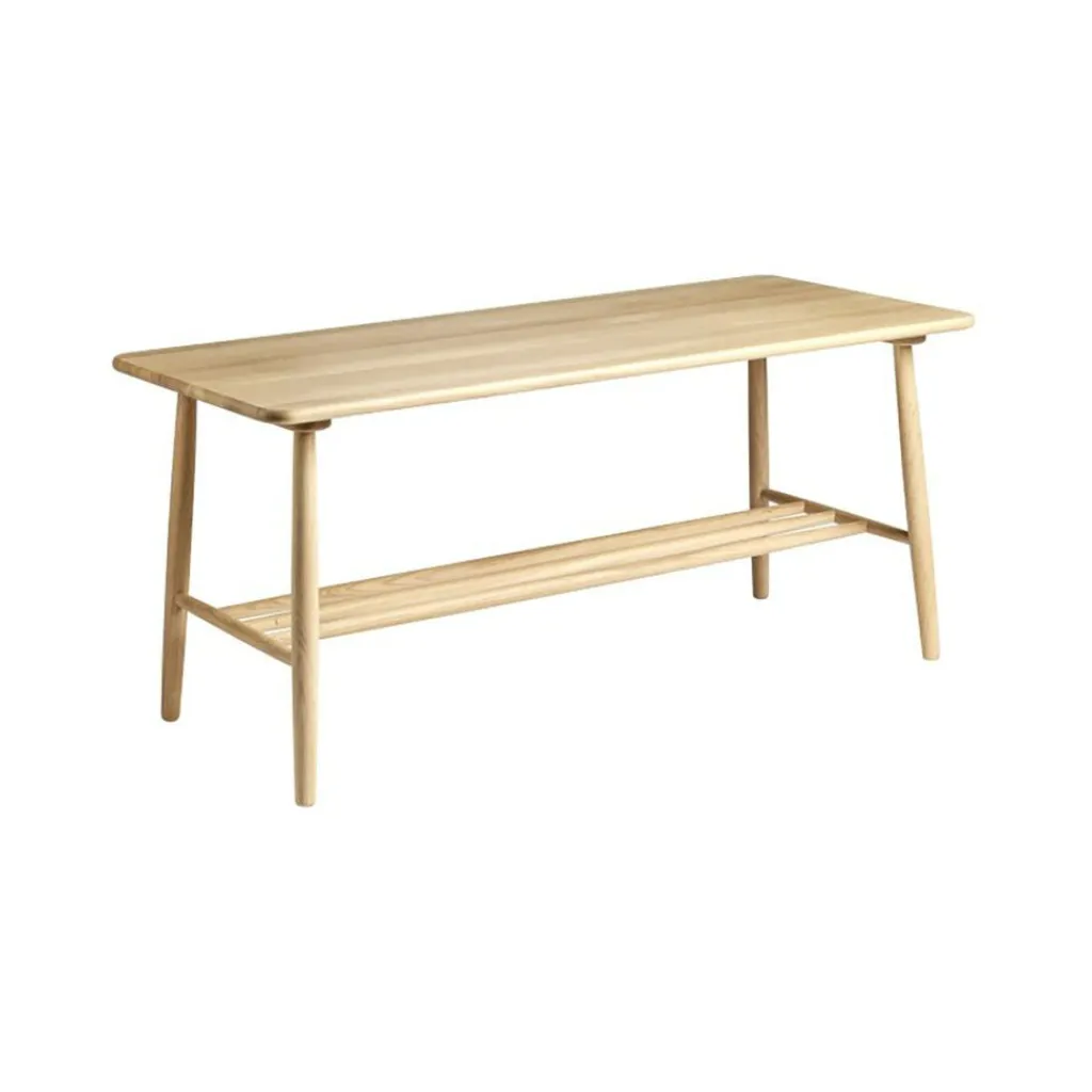 Mit seinen abgerundeten Ecken, den nach außen gewölbten Kanten und dem Tischgestell, das ausschließlich aus Rundstäben besteht, zeichnet sich der D20 Couchtisch 120x55cm durch sein harmonisch geformtes, kantenloses Design aus. Darüber hinaus besticht er durch Praktikabilität. Denn zwischen die Beine sind Querstäbe eingebaut, die nicht nur für eine hohe Stabilität sorgen, sondern auch als zusätzliche Ablagefläche dienen. Der D20 Couchtisch 120x55cm ist aus hochwertigem Eichen- oder Birkenholz gefertigt, das aus nachhaltiger Produktion stammt. Seine Oberfläche ist je nach Ausführung sanft geölt oder matt lackiert. Der Designtisch passt perfekt vor das Sofa im Wohnzimmer und dient zum Ablegen der Lektüre in einer Leseecke oder zum Abstellen von Taschen im Vorraum. Daneben macht sich der D20 Couchtisch 120x55cm auch gut im Wartebereich einer modernen Praxis.