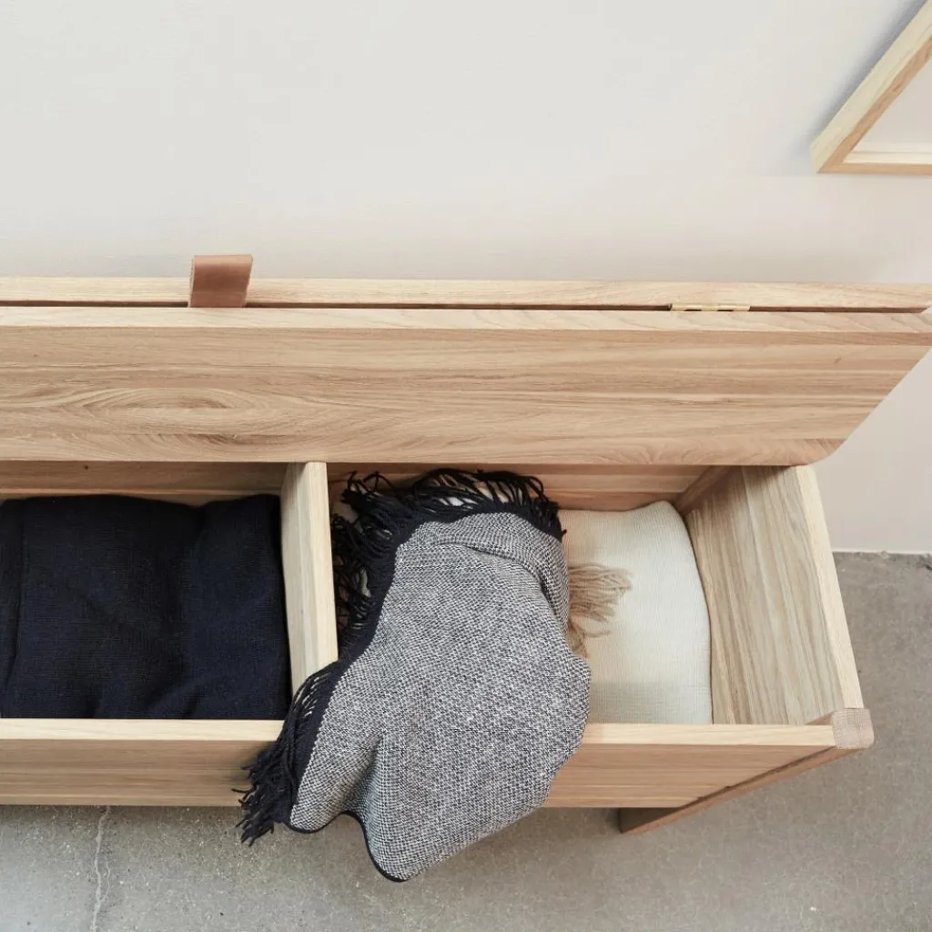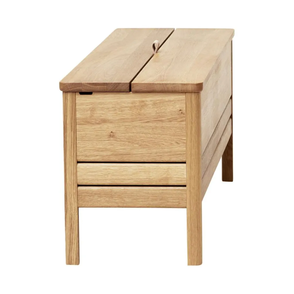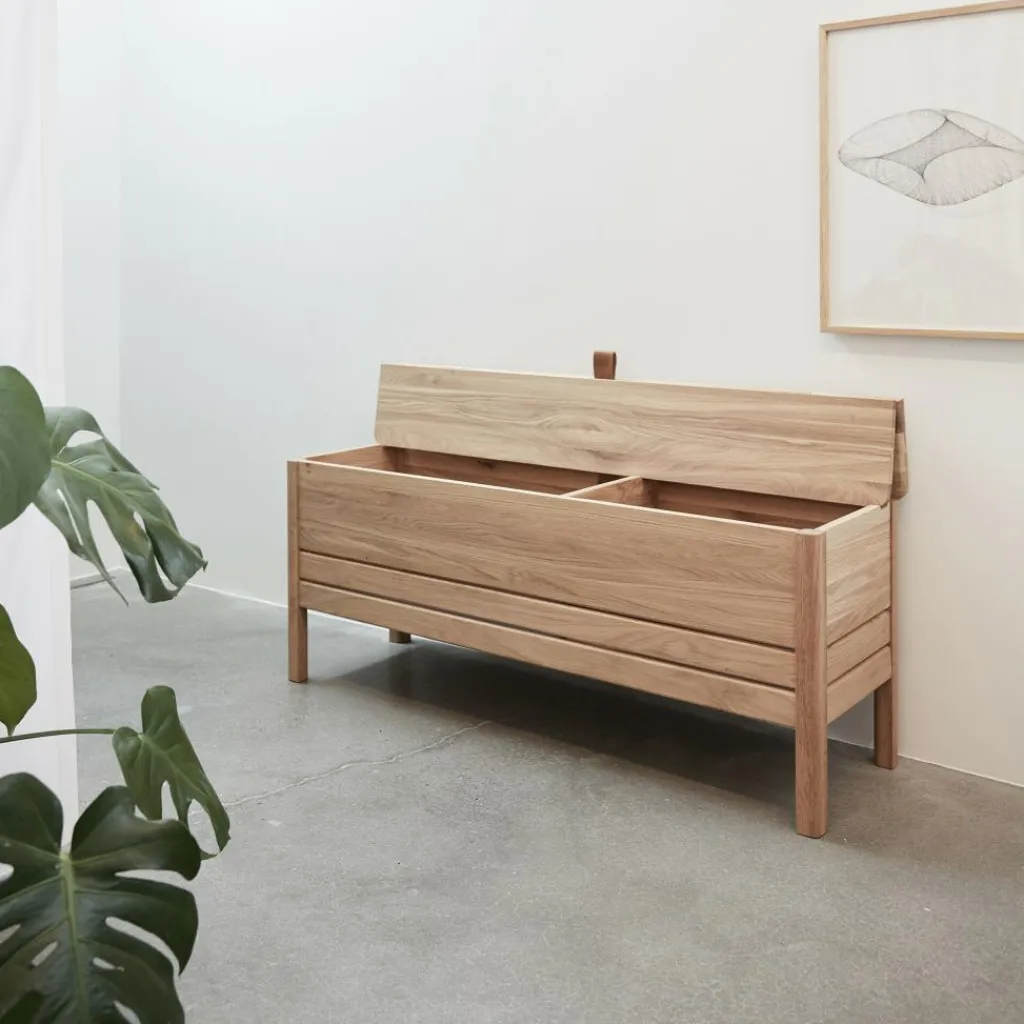 Die A Line Truhenbank 111cm wurde vom Herman Studio für die Marke Form & Refine entworfen. Dabei handelt es sich um eine herausragende Holzarbeit, die ganz dem Ruf nach multifunktionalen Möbeln gerecht wird.