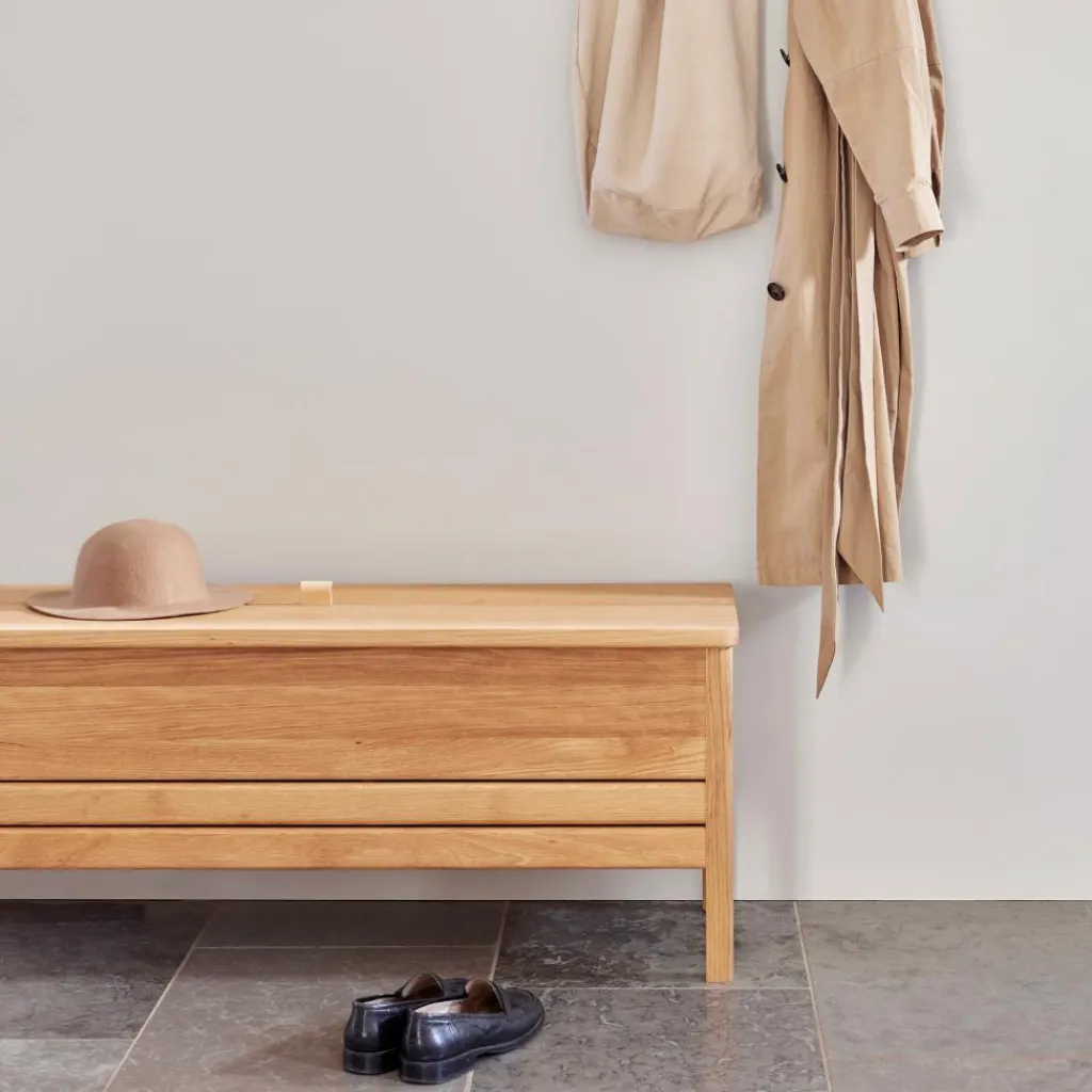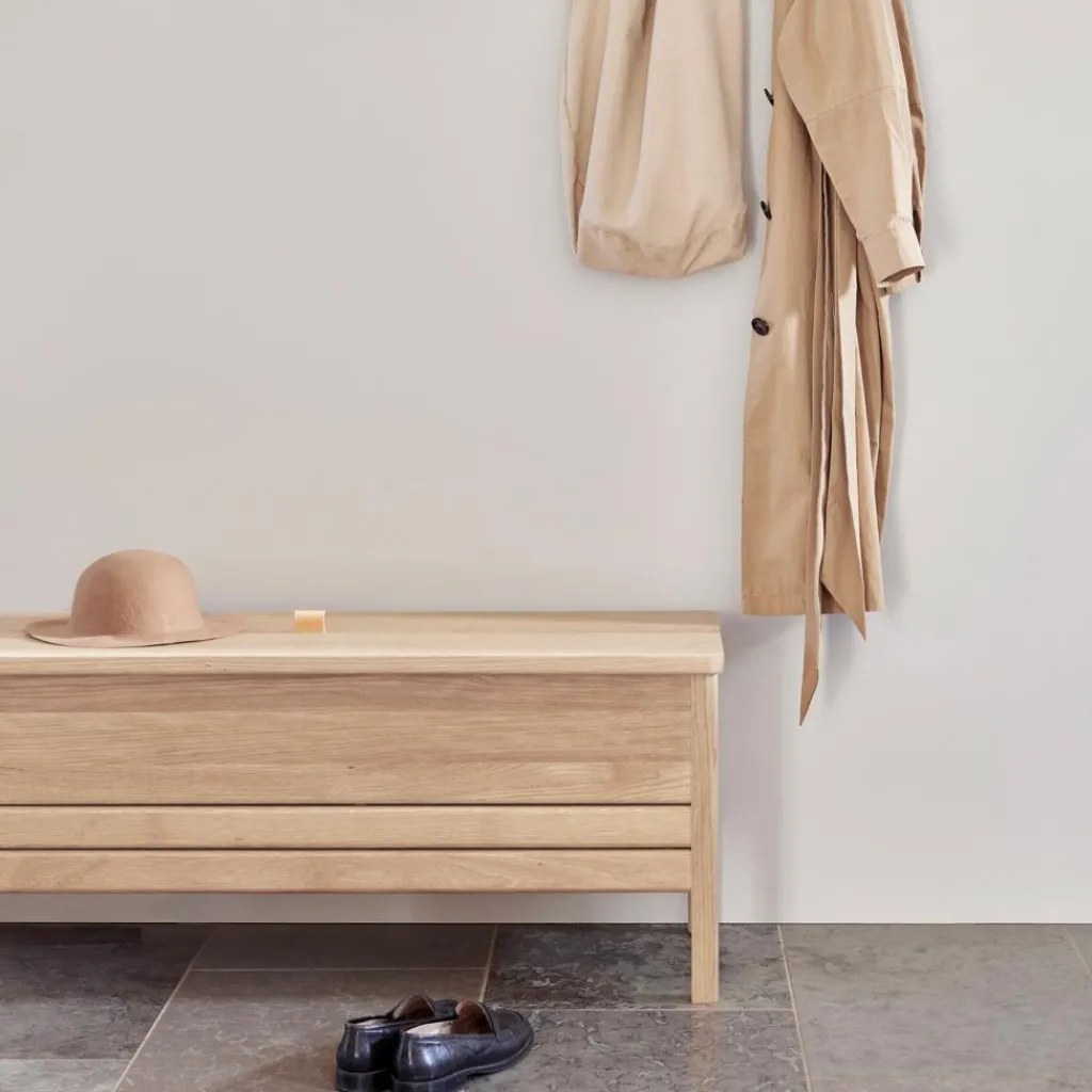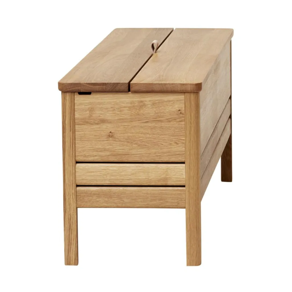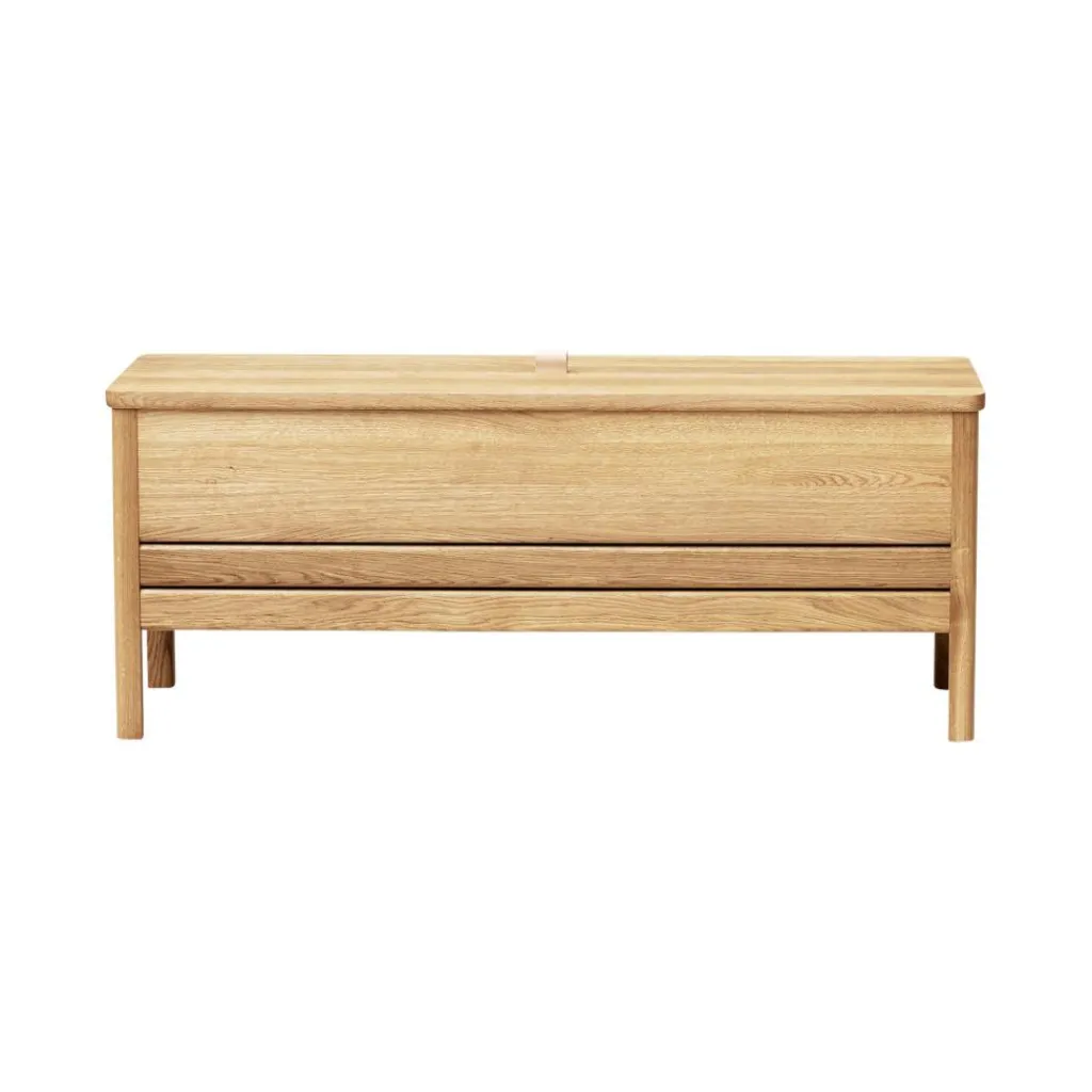 Die A Line Truhenbank 111cm wurde vom Herman Studio für die Marke Form & Refine entworfen. Dabei handelt es sich um eine herausragende Holzarbeit, die ganz dem Ruf nach multifunktionalen Möbeln gerecht wird.