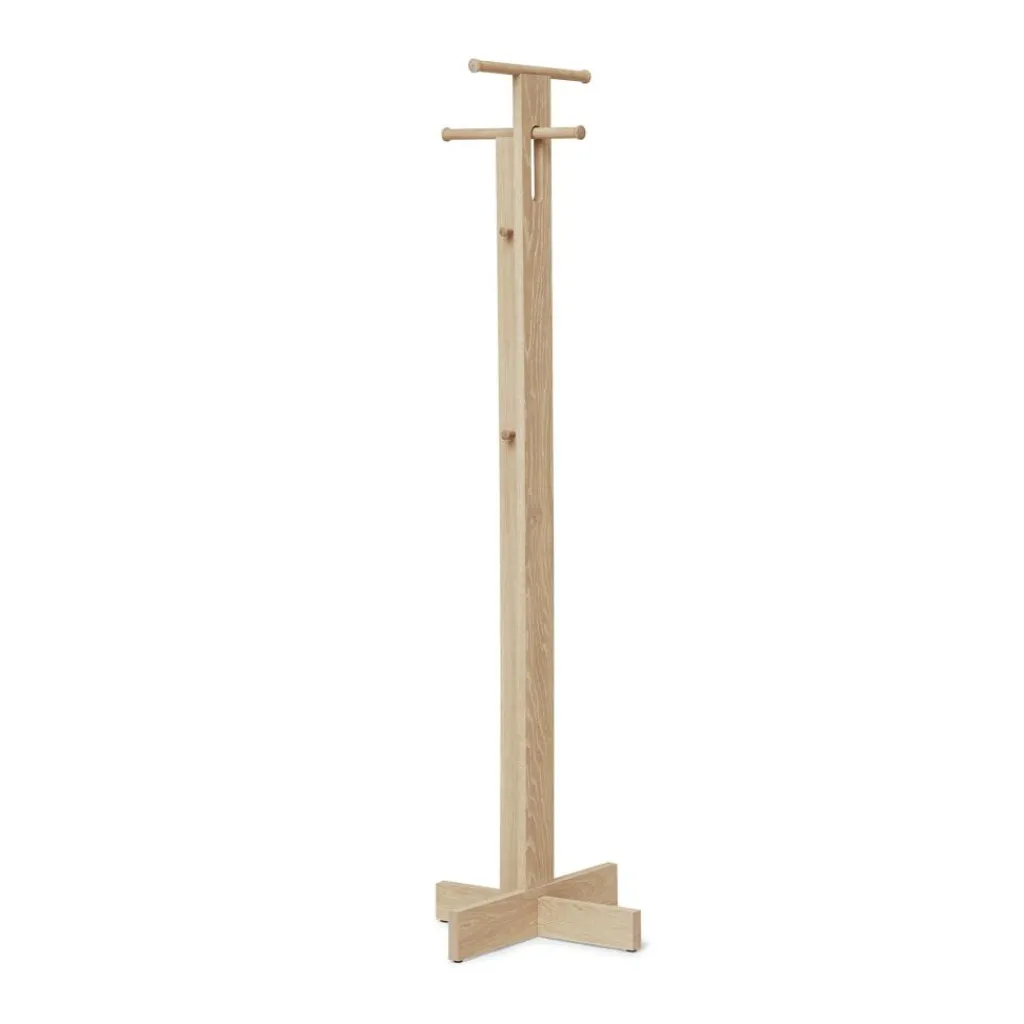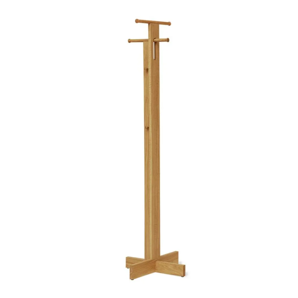 Der Foyer Kleiderständer wurde vom Herman Studio für die Marke Form & Refine entworfen. Das formschöne Holzmöbel drückt ein Statement für nachhaltiges Design aus. An seinem Bestimmungsort, dem Foyer, empfängt er mit seinem cleveren Design.