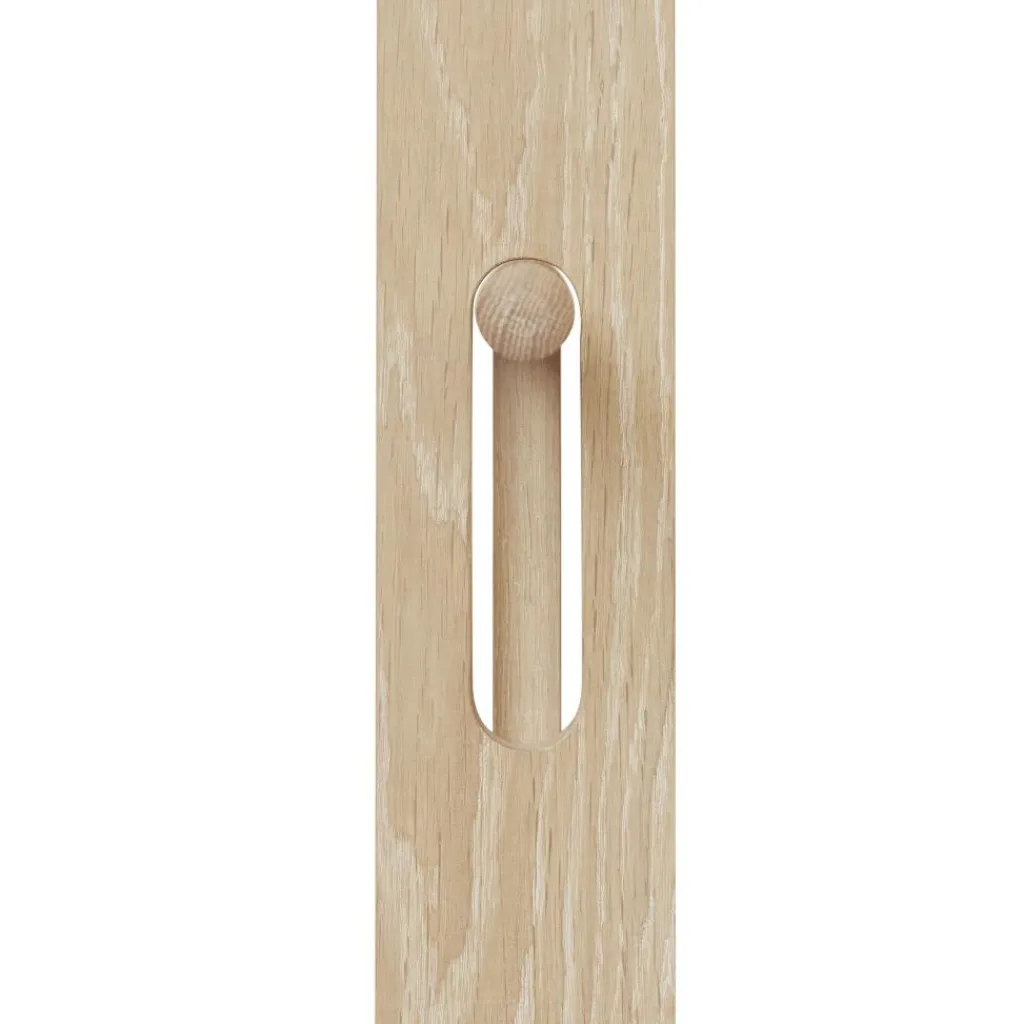 Zwei Säulen bilden den Kern dieses platzsparenden Designstücks. In Form von unterschiedlich langen Holzlatten sind sie rechtwinklig aufgestellt und raffiniert miteinander verbunden. Ihren oberen Abschluss bildet jeweils ein horizontaler Rundstab, der als Kleideraufhängung dient. Zudem ist der Foyer Kleiderständer mit Knäufen in unterschiedlicher Höhe versehen. Der Fuß der Konstruktion ist ein stabiles Holzkreuz aus ebensolchen Latten. Die homogen gestalteten kleinen Details machen den Foyer Kleiderständer zu einem attraktiven Hingucker. Hergestellt aus massivem Eichenholz, das aus FSC®-zertifizierter europäischer Produktion stammt und geölt oder pigmentiert unter Vermeidung von Schadstoffen ist, zeichnet er sich als nachhaltiges Produkt aus. Damit ist der Foyer Kleiderständer ein zeitgemäßes Designstück, das ebenso in einen Flur oder ins Vorzimmer daheim passt wie in ein schickes Café, die Zimmer eines Designhotels, in den Empfangsbereich im Büro oder ins Wartezimmer einer Praxis.
