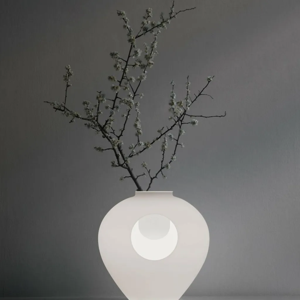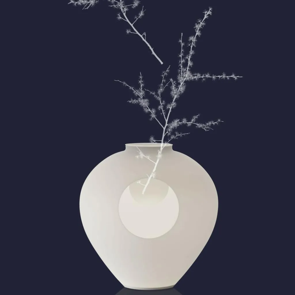Die runde Öffnung mit einem eingearbeiteten Gefäß ermöglicht einen vielseitigen Einsatz als Dekoelement. So kann in der Madre LED Tischleuchte ein schöner Ast mit Knospen eingesteckt oder andere dekorative Elemente ähnlich wie in einer Vase arrangiert werden. Ein LED-Leuchtmittel mit 17,5W ist im Lieferumfang bereits enthalten. Die Höhe der Madre LED Tischleuchte beträgt 36cm und der Durchmesser 30cm. Am Fuß hat die Tischleuchte einen Durchmesser von 13cm, was für einen stabilen Stand auf dem Tisch oder auf einer Kommode ideal ist.