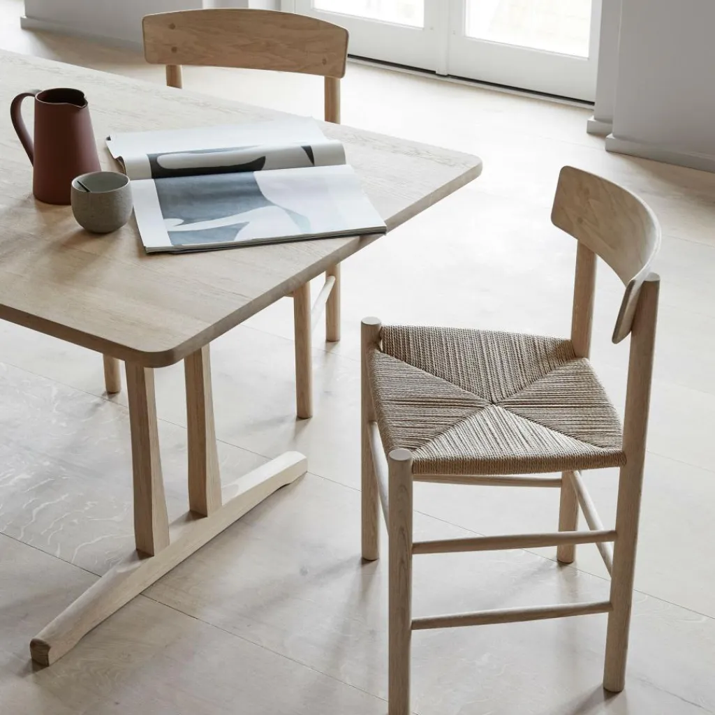 Schlicht, funktional und voller Charakter – der J39 Stuhl von Børge Mogensen für Fredericia verkörpert die Essenz dänischen Designs mit einem starken Fokus auf Handwerk und Langlebigkeit.