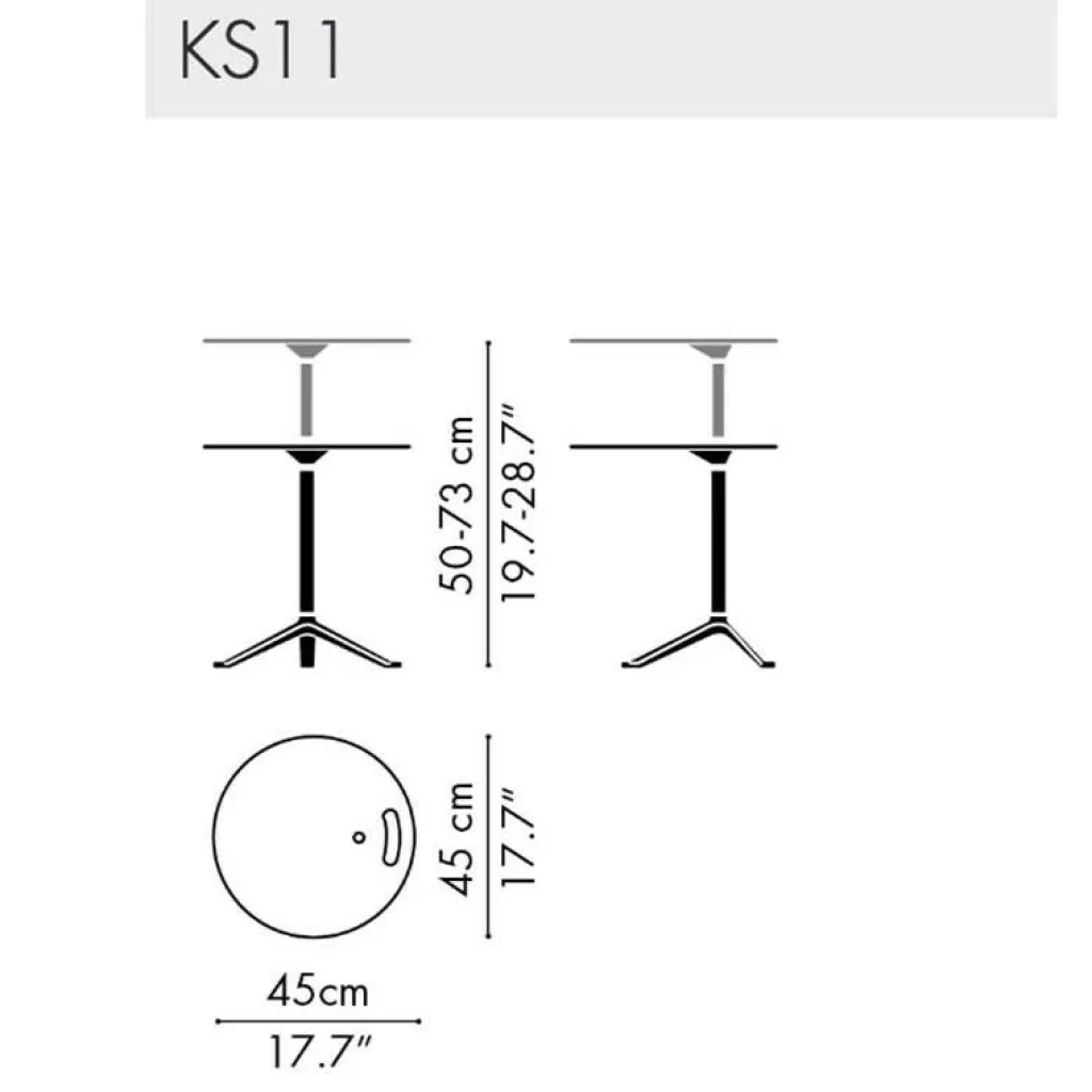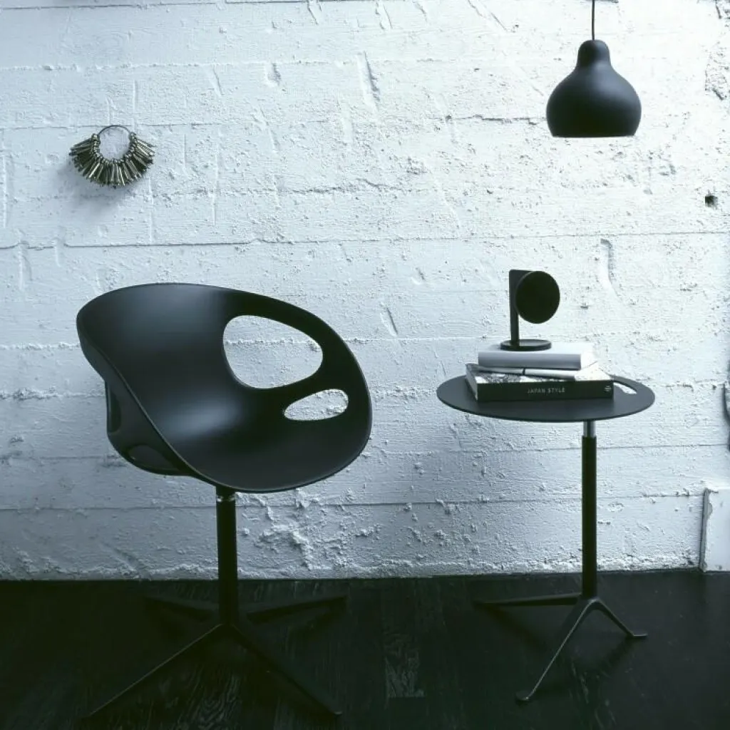 Die Tischplatte des Little Friend Tisch ist aus Kompaktkunststoff gefertigt, das dreibeinige Gestell aus Chrom. Eine kleine Aussparung in der Tischplatte ermöglicht schnelle Ortswechsel. Erhältlich ist der Little Friend Tisch in unterschiedlichen Ausführungen, sehen Sie dazu mehr in unseren „Produktvariationen“.