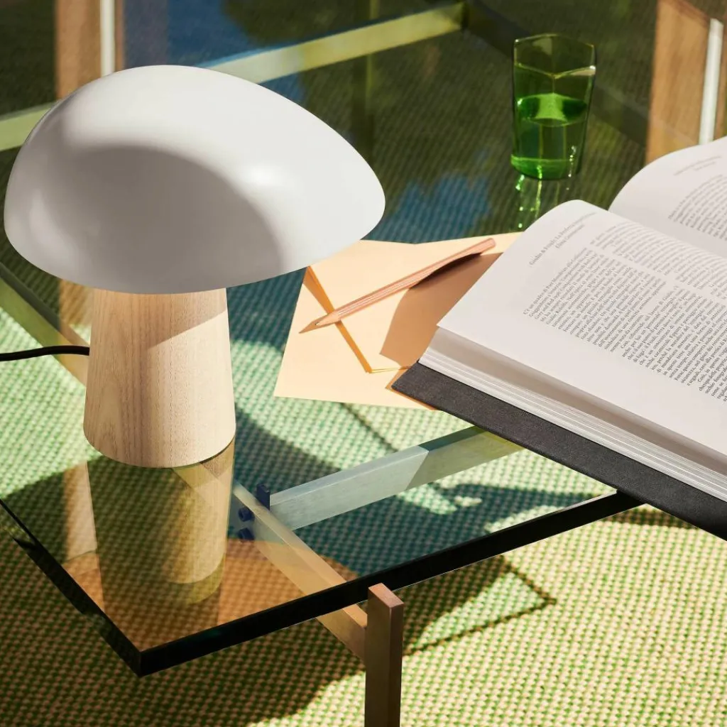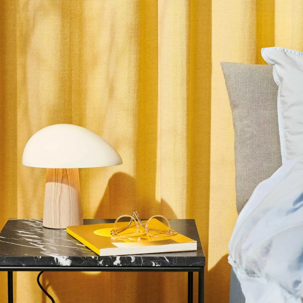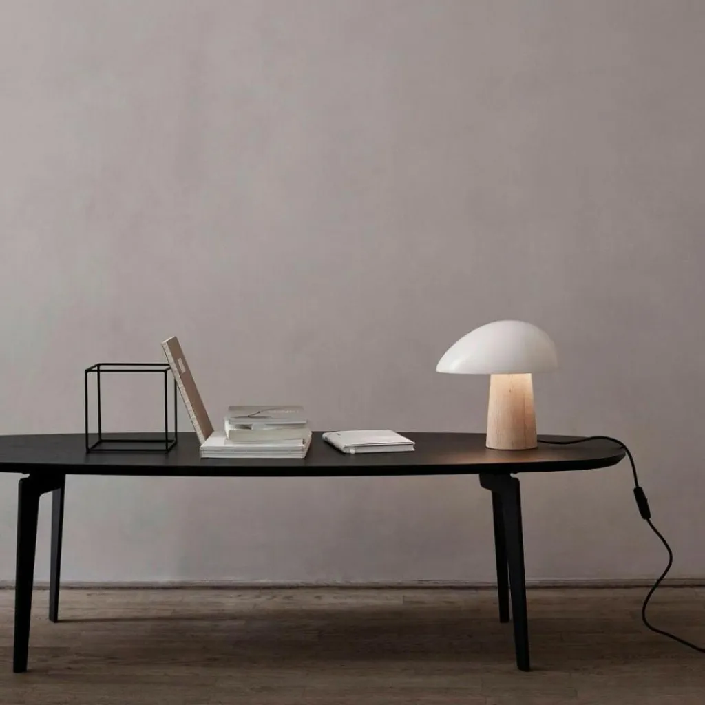 Der ovale Leuchtenschirm erinnert in Kombination mit dem konischen Gestell an einen Pilz im Wald. Die Formen sind weich und organisch, sie gehen mit einer unverwechselbaren Charakteristik einher. Die Night Owl Tischleuchte platzieren Sie nach Ihrem eigenen Belieben auf dem Nachttisch, Sideboard, Regal oder auf der Fensterbank. Die Idee des Designers Hansen, ein warmes und zartes, an den hohen Norden erinnerndes Licht zu kreieren, ist ihm gelungen. Der sanfte Schein breitet sich ovalförmig nach unten aus.