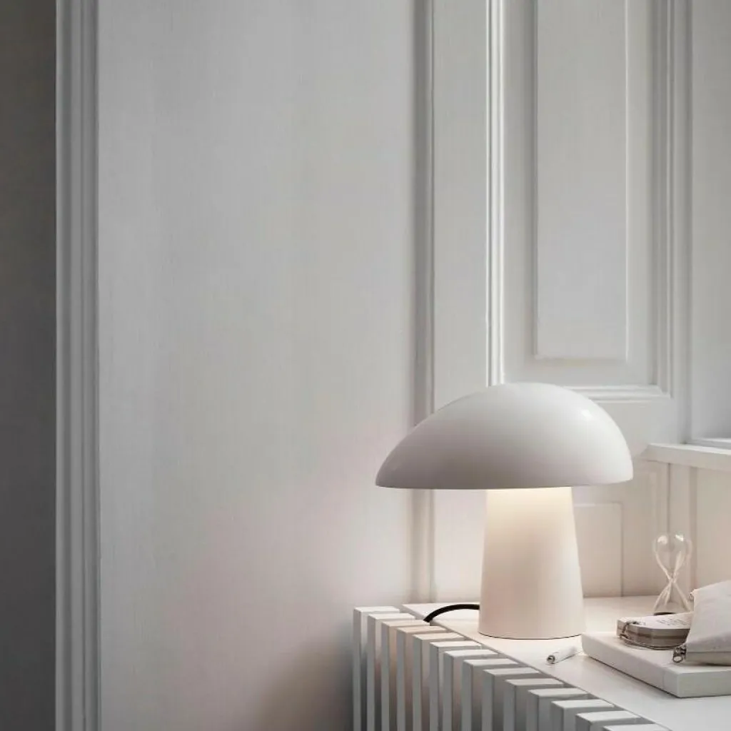 Der ovale Leuchtenschirm erinnert in Kombination mit dem konischen Gestell an einen Pilz im Wald. Die Formen sind weich und organisch, sie gehen mit einer unverwechselbaren Charakteristik einher. Die Night Owl Tischleuchte platzieren Sie nach Ihrem eigenen Belieben auf dem Nachttisch, Sideboard, Regal oder auf der Fensterbank. Die Idee des Designers Hansen, ein warmes und zartes, an den hohen Norden erinnerndes Licht zu kreieren, ist ihm gelungen. Der sanfte Schein breitet sich ovalförmig nach unten aus.