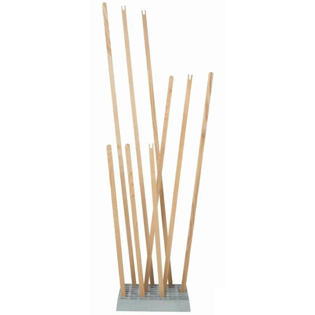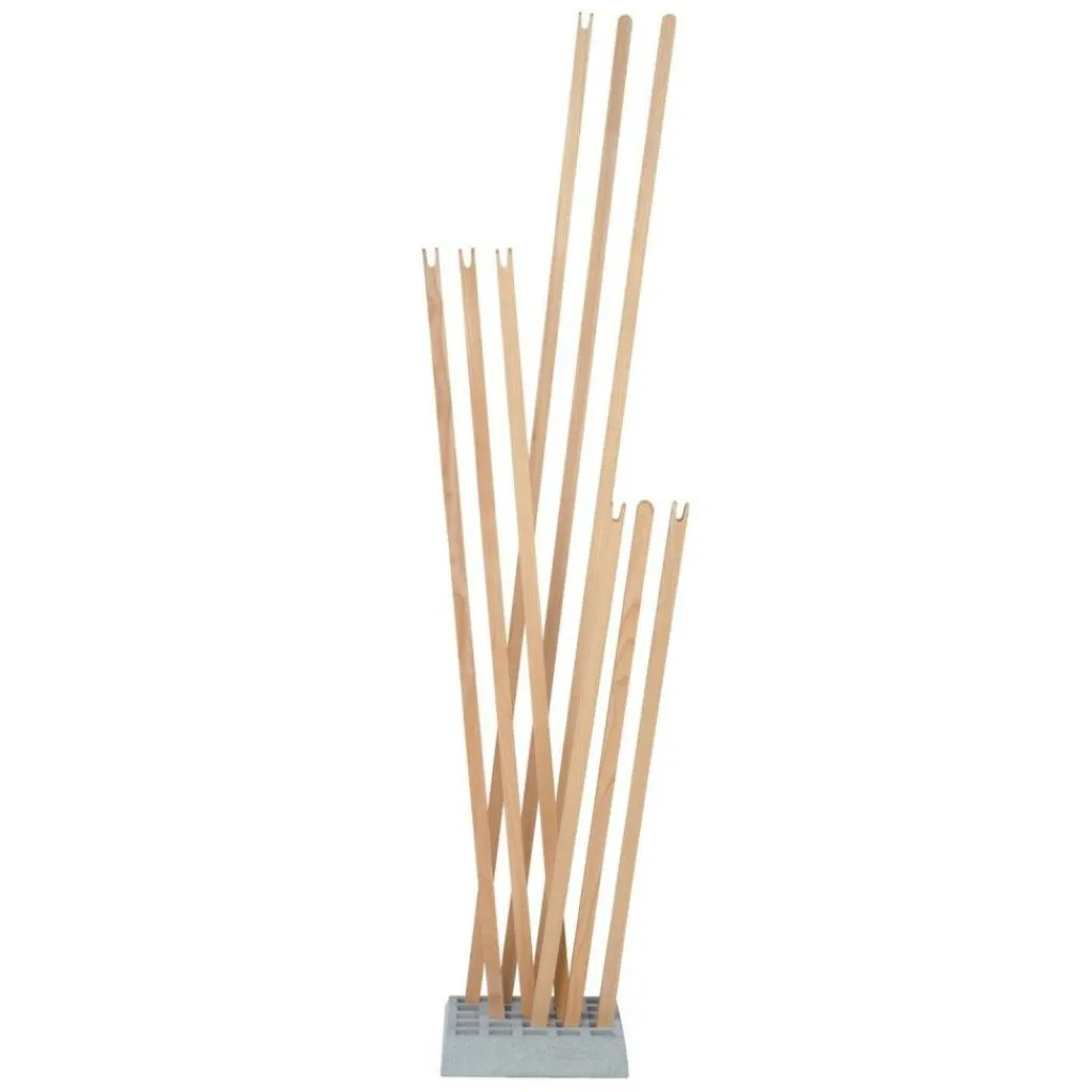 Ob lässig übergeworfene Kleidung oder welche, die sorgsam auf Bügeln hängt, die Moormann Pin Coat Garderobe ist ein Garderobenständer für jede Art von Garderobentyp. Einkerbungen an den Stab-Enden nehmen sowohl Bügel als auch Kleideraufhänger auf.