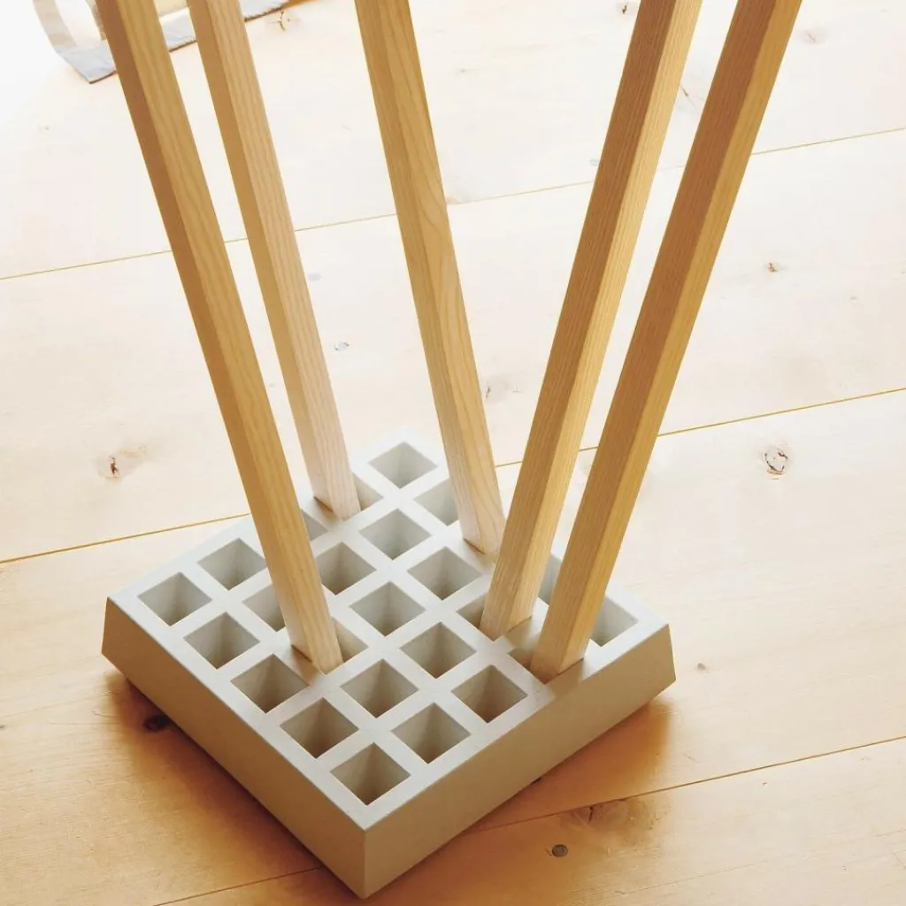 Die Moormann Pin Coat Garderobe wurde von dem Designer Oliver Bahr im Jahr 2002 für den deutschen Hersteller Moormann entworfen. Der Garderobenständer Pin Coatist ein cleveres System, dass eine Vielzahl von Hängemöglichkeiten bietet und für Kleidung von kleinen Leuten ebenso geeignet ist wie für lange Mäntel von großen Leuten. Die Garderobe Pin Coat ist eine flexible Ansammlung von Stäben aus massivem Holz, die lose in einem quadratisch gegossenen Sockel aus Beton stecken.