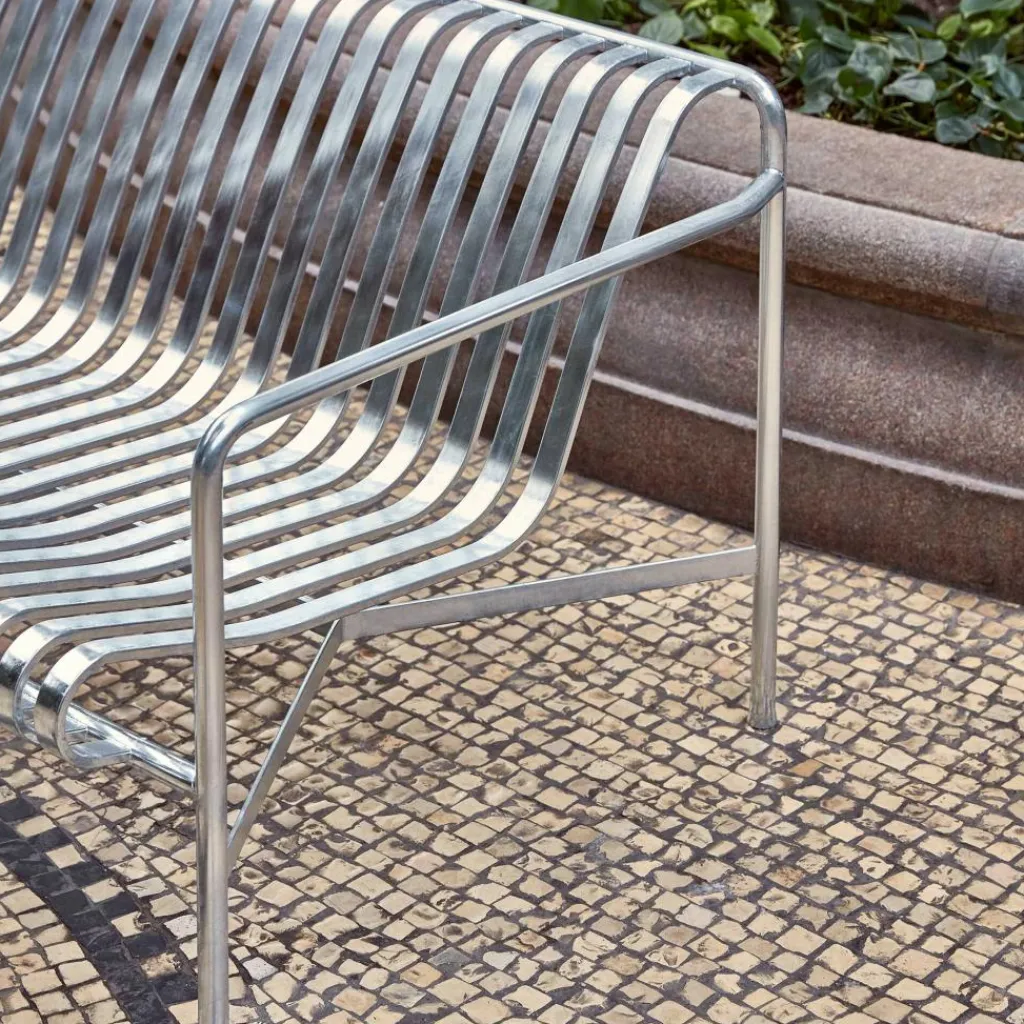 Das Palissade Outdoor Lounge Sofa Feuerverzinkt wurde von Ronan Bouroullec und Erwan Bouroullec für die Marke HAY entworfen. Vom ersten Entwurf des Brüderpaares mit einfachen Strichen vergingen zwei Jahre bis die wetterfeste Palissade-Kollektion in die Geschäfte kam.