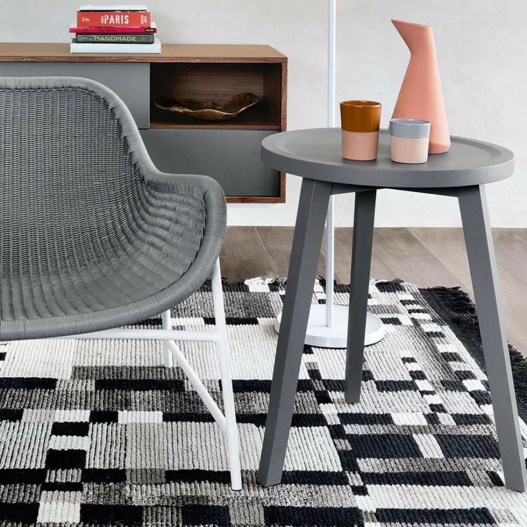 Der Gray 44 Beistelltisch ist mit seiner Höhe von 65 cm und dem Durchmesser von 50 cm ein kompakter Begleiter in Sitzecken, vor Sofas oder neben dem Sessel im Wohnzimmer. Durch das schlichte Design können Sie den Tisch mit den verschiedensten Einrichtungsgegenständen kombinieren, egal, ob Sie lackierte, naturbelassene oder geflochtene Möbel haben. Auch macht er sich sehr gut in offenen Räumen mit viel Licht.