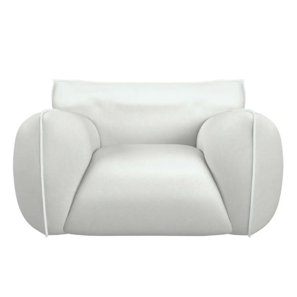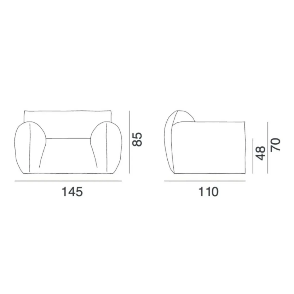 Die Kombination aus einem Polyurethanschaum-Polster und weichem Stoff sorgt dafür, dass man ausgiebig lange auf dem Sessel sitzen kann. Der Nuvola 09 Sessel ist 155 cm breit, 85 cm hoch und hat eine Tiefe von 110 cm. Die Sitzhöhe liegt bei 48 cm. Übrigens kann er nicht nur im Wohnzimmer verwendet werden, sondern passt auch in viele andere Kontexte. Was die Oberfläche betrifft, so gibt es auch eine schlichtere Ausführung in weißem Leinen mit charmant nach außen gekehrten Nähten.