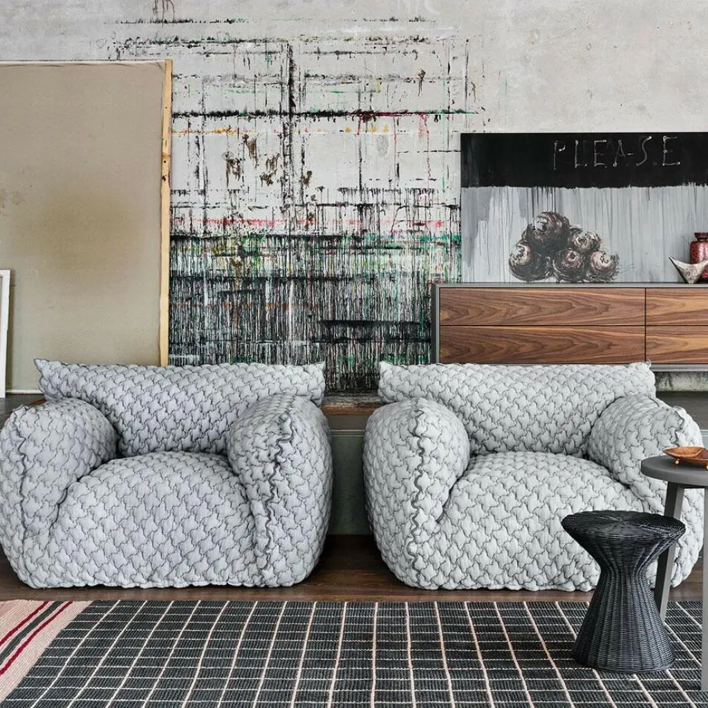 Der moderne und elegante Nuvola 09 Sessel wurde von der italienischen Designerin Paola Navone exklusiv für den Hersteller Gervasoni entworfen. Er ist in drei Farben erhältlich, wobei die blaue Ausführung derzeit noch vor dem weißen und dem hellgrauen Modell am beliebtesten ist. Das Highlight am Sessel ist sicherlich die Beschaffenheit seiner Oberfläche, die, je nach Ausführung, durch einen tollen 3-D-Stoff charakterisiert ist und sich daher besonders angenehm anfühlt – man sitzt hier buchstäblich auf Wolken.
