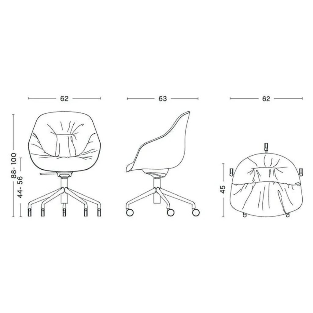 Die Sitzhöhe es About a Chair AAC 155 Soft Bürostuhl Gestell schwarz lässt sich von 44 bis 56 cm verstellen. Somit verändert sich die Höhe von 88 bis 100 cm. Der Bürostuhl ist 62 cm breit und 63 cm tief.