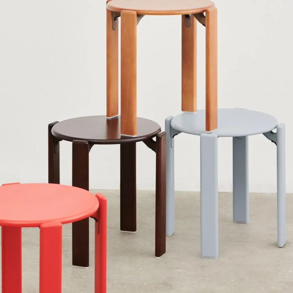 Der Rey Hocker wurde von Bruno Ray für die Marke HAY entworfen. Ursprünglich stammt die Rey-Serie aus dem Jahr 1971. Sie umfasst auch Tische und Stühle. Im Jahr 2022 erfolgte die Neuauflage des Klassikers in Kooperation mit Dietiker, einem Unternehmen aus der Schweiz, das Möbel ohne Schraubverbindungen herstellt.
