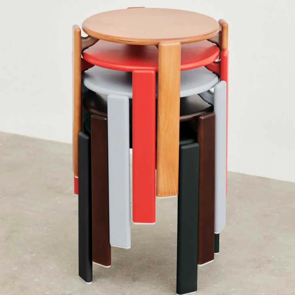 Der Rey Hocker ist wegen seiner Vielseitigkeit ein beliebtes Möbelstück: Er kommt als zusätzliche Sitzgelegenheit im Wohn- oder Esszimmer zum Einsatz, dient im Flur als Blickfang oder wird im Büro oder im Home-Office als Ablagefläche verwendet. Wie alle Modelle aus der Rey-Kollektion fällt der Hocker durch seine an der Außenseite montierten Füße auf. Sie sind aus massivem Buchenholz hergestellt. Die rund geschnittene Sitzfläche hat einen Kern aus Sperrholz und ist mit Buchenfurnier beschichtet. Wasserbasierter Lack macht die Oberfläche unempfindlich. Der praktische Hocker ist in verschiedenen Farben zu haben. Sollte der Rey Hocker einmal nicht gebraucht werden, kann er platzsparend verwahrt werden. Bis zu vier Stück sind nämlich stapelbar.