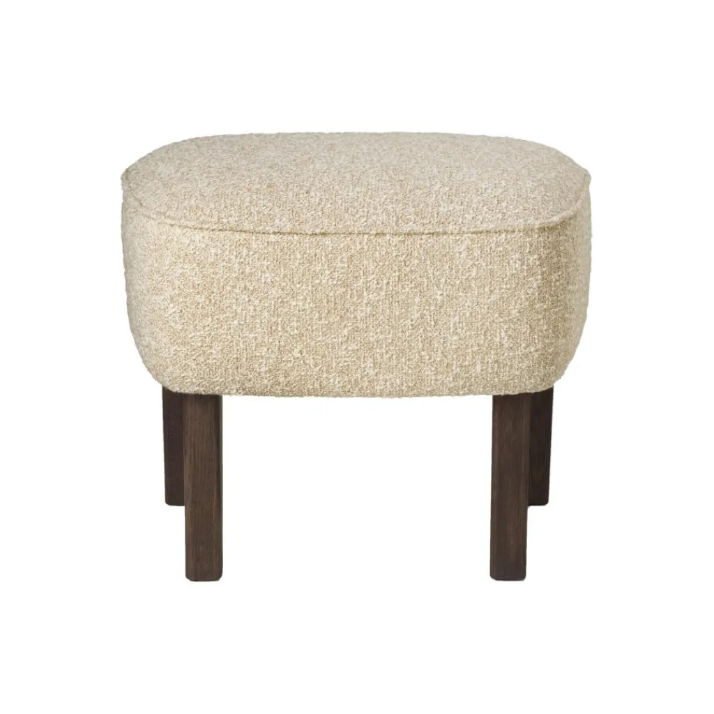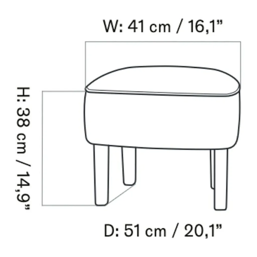 Der gemütliche Hocker ist mit einem Bezug der Marke Kvadrat aus grob strukturiertem Bouclé-Stoff bestehend aus 65% Baumwolle, 20% Polyacryl und 15% Polyester bezogen. Das Gestell mit seinen vier Beinen ist aus massivem Eichenholz gefertigt. In der Länge misst der rechteckige Ingeborg Fußhocker Stoff 51cm bei einer Breite von 41cm und einer Höhe von 38cm. Er eignet sich damit gleichermaßen als bequemer Hocker zum Hochlegen der Füße sowie als zusätzliche Sitzmöglichkeit im Wohnzimmer für Gäste oder als praktische Ablagefläche für Zeitschriften, Snacks & Co neben dem Sofa. Dank des geringen Gewichtes von 5,2kg lässt sich der Ingeborg Fußhocker Stoff flexibel im Raum verschieben. Der Name des Hockers geht übrigens auf Ingeborg Winding, die Mutter des Designers Flemming Lassen zurück.