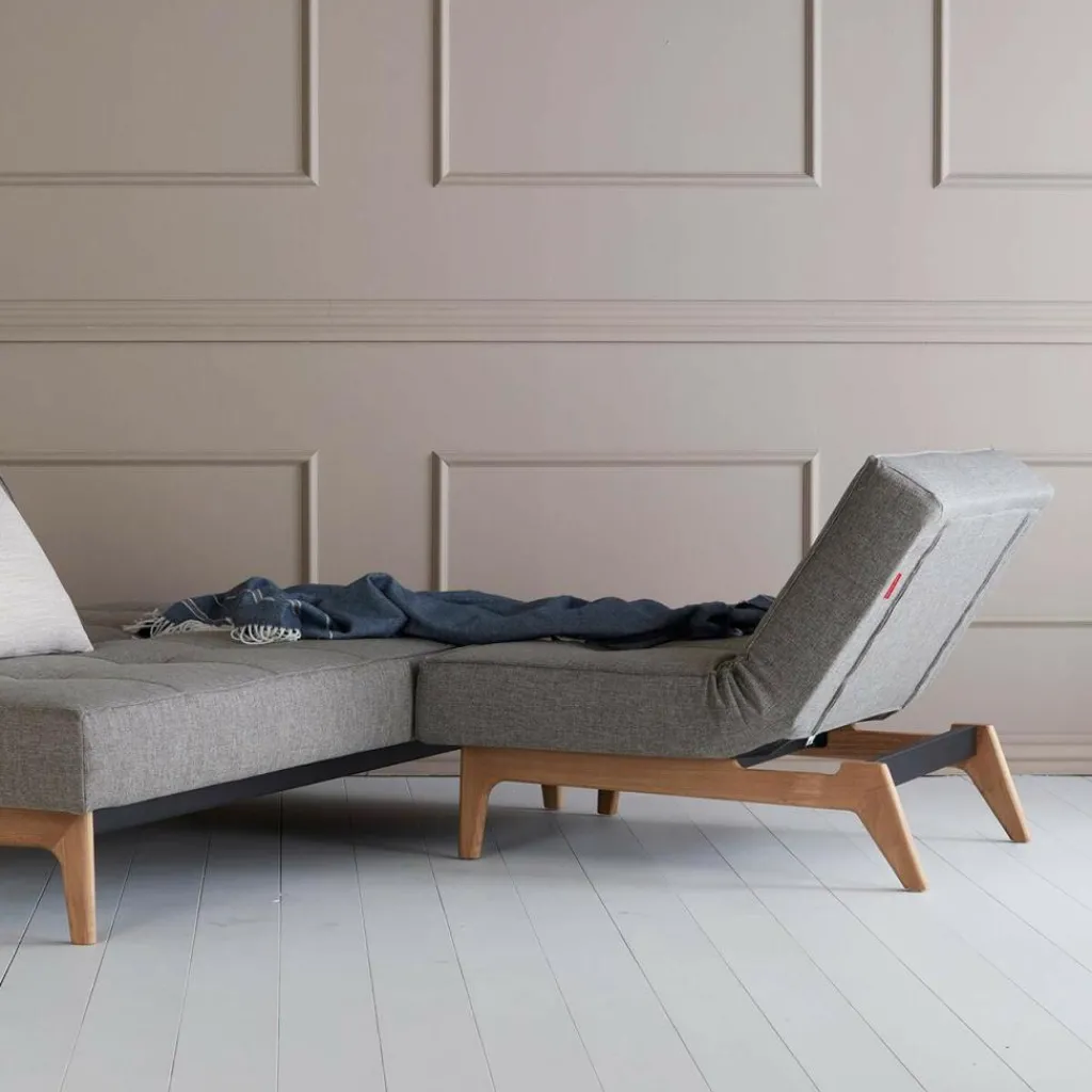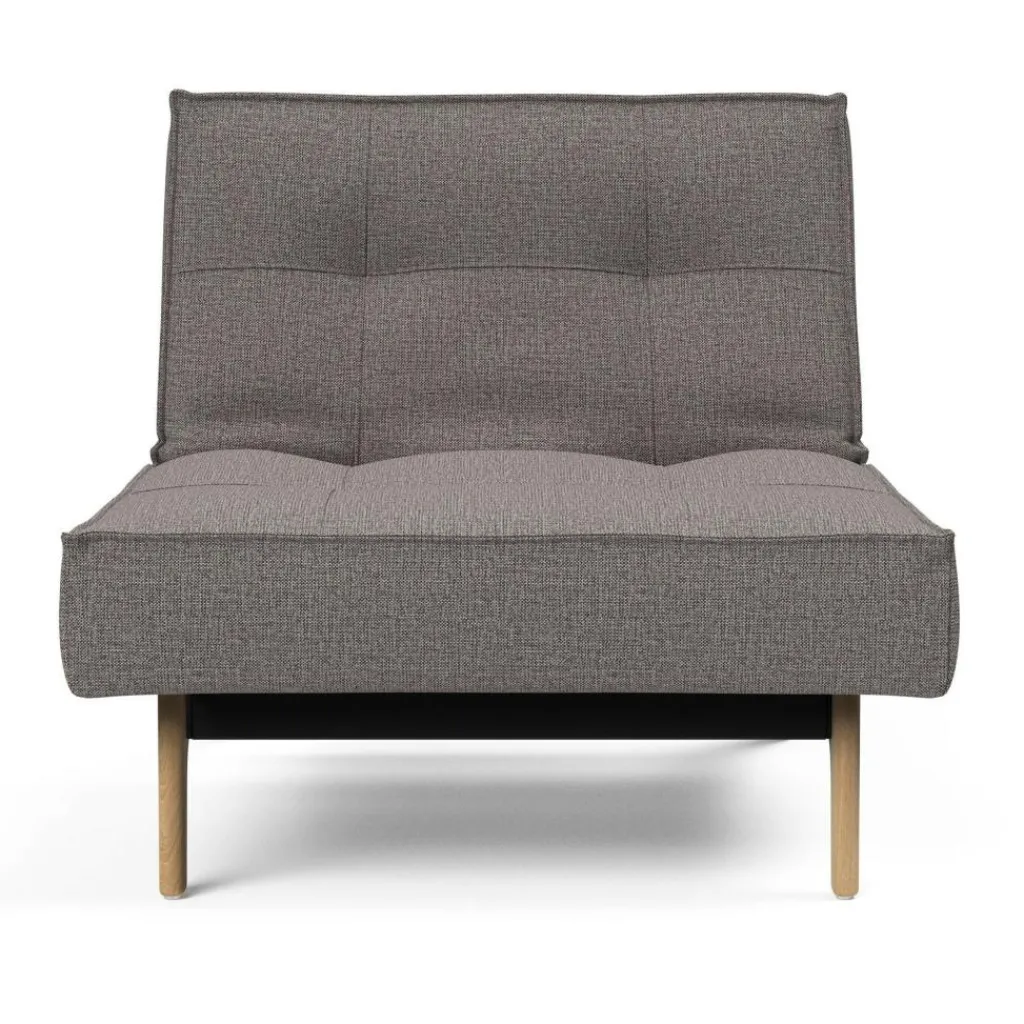 Vor allem die Istyle-Kollektion, zu der auch der Splitback Sessel Eiche gehört, schaffte es, das Verständnis vom Gästebett und von der ausziehbaren Couch auf eine neue Ebene zu heben. Dank einer integrierten Taschenfederkernpolsterung stehen die Schlafsofas und -sessel echten Betten mit Matratzen in nichts nach und schenken Ihren Gästen, die spontan bei Ihnen übernachten, wundervolle Träume. Der Splitback Sessel Eiche besitzt ein Beingestell aus hell gebeiztem Eichenholz und im Inneren einen robusten Stahlrahmen, der die Polsterung fixiert. Der 90 cm breite und 96 cm tiefe Sessel ist mit einem pflegeleichten Stoff bezogen. Die trapezförmige Sitzgelegenheit kann gemeinsam mit einem zweiten identischen Modell zu einem Gästebett kombiniert werden. Aber auch der einzelne Sessel kann mittels des Klickbeschlages an der Rückenlehne in seiner Form verändert werden. Diese lässt sich in drei unterschiedlichen Positionen befestigen und erlaubt es den Sessel in eine Chaiselongue oder ein Kinderbett mit einer Liegefläche von 115 x 90 cm zu verwandeln.