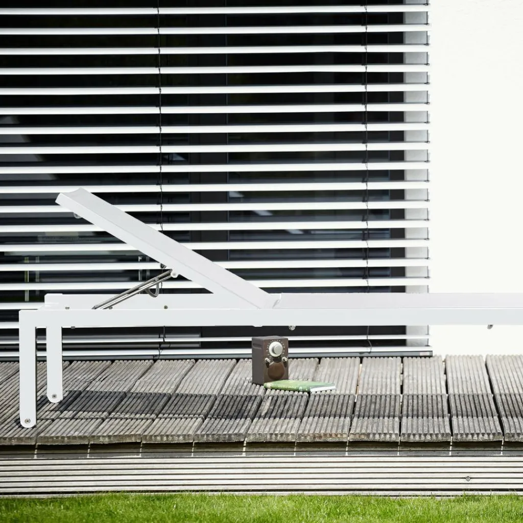 Mit ihrer Größe von 207 x 72,5 x 34 cm passt sich die Quadrato Sonnenliege formvollendet in ihre Umgebung ein. Dabei besticht sie am Pool zunächst einmal mit ihrer hochwertigen Materialauswahl. Das schlanke Gestell ist aus hochwertigem Aluminium gefertigt. Dadurch ist die Liege besonders leicht und lässt sich ohne Probleme transportieren. Die Liegefläche aus Batyline sorgt für den notwendigen Komfort und die Langlebigkeit der Liege. Hier bekommt man einen Begleiter für den Pool, der viele Jahre hält. Außerdem kann man sich hier zwischen vielen verschiedenen Produktvarianten entscheiden. Es gibt die Liege nämlich nicht nur in klassischem Weiß, sondern auch in elegantem Schwarz. So veredeln Sie Ihre Terrasse auf formvollendete Weise.