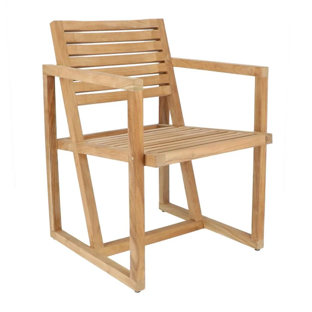 Für den stilvollen Outdoorstuhl verwendet Hofbauer Teakholz. Der Werkstoff hat von Natur aus einen hohen Ölgehalt. Das macht ihn unempfindlich gegenüber Witterungseinflüssen. Der Timber Gartenarmlehnsessel kann auch bei schlechtem Wetter im Freien bleiben. Da die Sitzfläche und die Rückenlehne aus Lamellen zusammengesetzt sind, kann Regenwasser leicht durch die Spalten dazwischen abfließen. Auffallend ist die geneigte Rückenlehne. Sie bietet dem Körper in jeder Position eine wertvolle Stütze. Von der Seite gesehen, dienen zwei rechteckige Seitenrahmen als Füße und Armlehnen. Wegen seines zurückhaltenden Designs passt der Timber Gartenarmlehnsessel in jedes Umfeld. Er kann neben dem Pool, auf der Terrasse oder auf dem Balkon aufgestellt werden.
