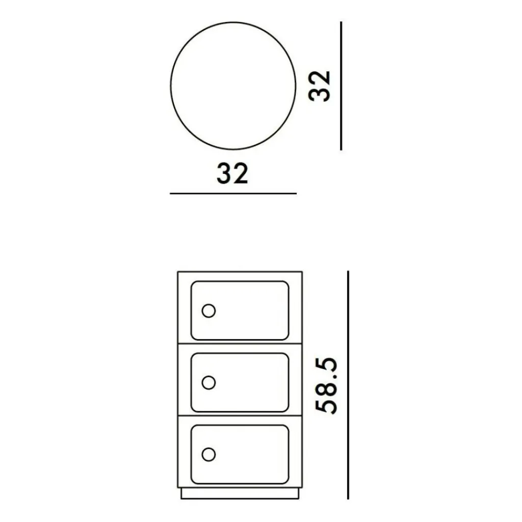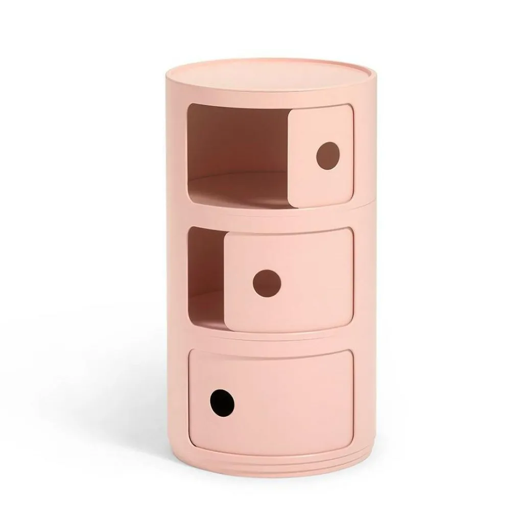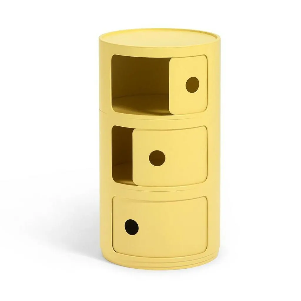 Der Componibili Bio Container setzt auch mit seinen eigenwilligen Farben interessante Akzente in Ihren vier Wänden: Die kräftigen, frechen Töne der verschiedenen Ausführungen sorgen für gute Laune und einen spannenden Farbtupfer im eklektischen Interieur. Bei einer Höhe von 58,5 cm und einem Durchmesser von 32 cm wiegt der Bio-Container lediglich 3,15 kg. Er setzt sich aus drei Elementen zusammen, die mit je einer Tür ausgestattet sind.