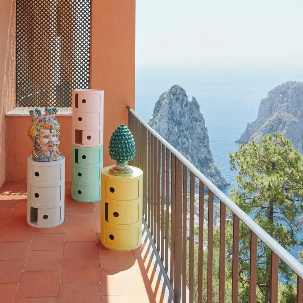 Der Componibili Bio Container wurde von der Designerin Anna Castelli Ferrieri exklusiv für die Marke Kartell entworfen. Der erste Entwurf des Containers geht bereits auf das Jahr 1969 zurück und stellt eines der bekanntesten Designs des italienischen Hauses dar. Das Objekt ist nicht nur in eleganten Privatresidenzen, sondern auch im MoMA in New York oder im Centre George Pompidou in Paris zu finden.