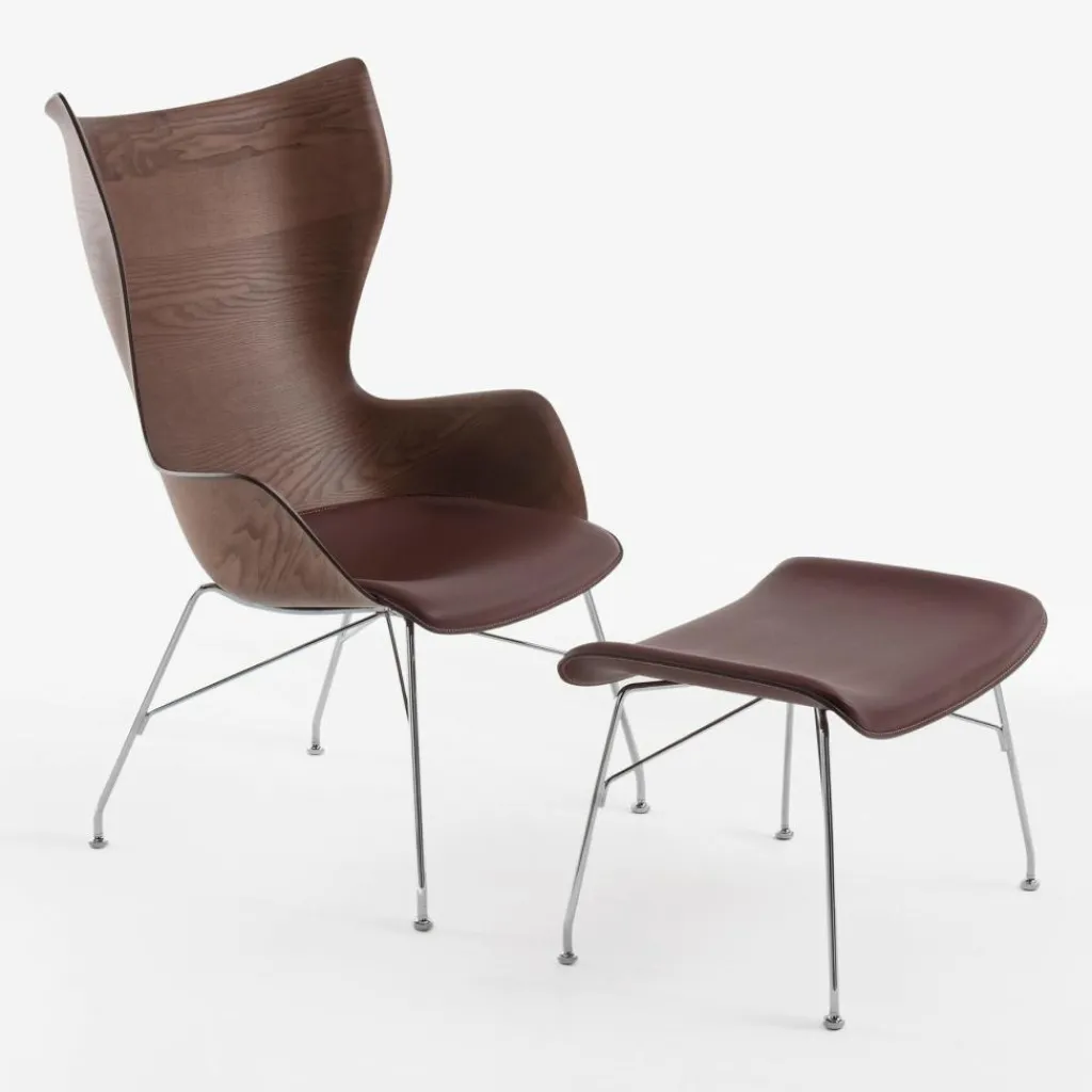 Der K/Wood Sessel Leder wurde von dem Designer Philippe Starck für die Marke Kartell entworfen. Die Idee war es, den klassischen Ohrensessel in die Gegenwart zu bringen und so zeitgemäß zu reinterpretieren. Das Ergebnis überzeugt vollkommen und besticht mit ansprechenden, weichen Linien.