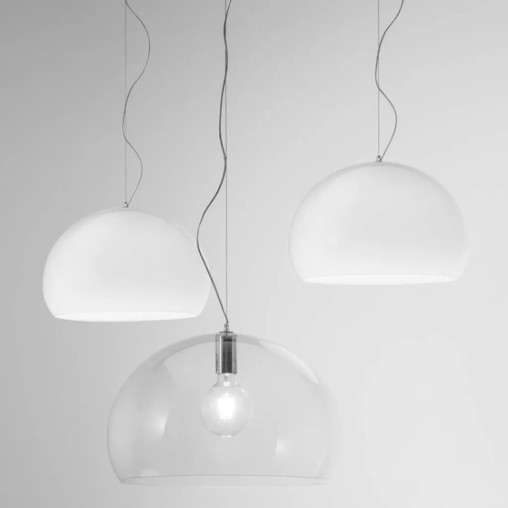 Die klassisch-schöne Small FL/Y Pendelleuchte wurde von Designer Ferruccio Laviani für den Hersteller Kartell entworfen. Sie gehört zur gleichnamigen Kollektion des Designers, die bereits im Jahr 2002 entworfen wurde. Die halbrunde Form der Leuchte, aber vor allem die Transparenz des Materials sorgt für fast unendlich viele Gestaltungsmöglichkeiten.