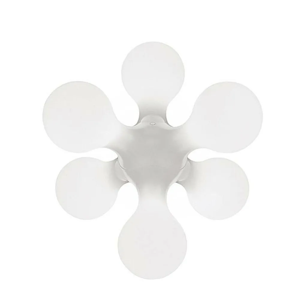 Der Schalter der Atomium Bodenleuchte/Tischleuchte ist im 250 cm langen Kabel integriert. Die Leuchte hat einen Durchmesser von 62 cm. Das futuristische Modell ist 58 cm breit, 62 cm lang und 52 cm hoch. Die Leuchte benötigt 6 Leuchtmittel mit E14-Fassung, die unter Zubehör mitbestellt werden können.