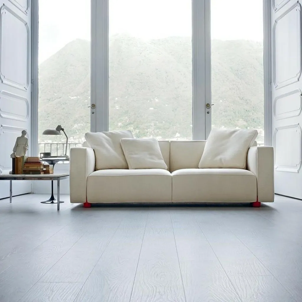 Die Tiefe der eleganten Couch beträgt 102 cm bei einer Breite von 186 cm. Damit können zwei bis drei Gäste auf dem Barber & Osgerby 2-Sitzer Sofa problemlos Platz nehmen. Die breit geformten seitlichen Lehnen als Ablage für die Arme oder den Kopf erhöhen die bequemen Eigenschaften in sitzender oder auch liegender Position, falls Sie am Wochenende Ihre freie Zeit dort genießen möchten. Auf Wunsch erhalten Sie das Möbel auch in anderen Farben. Zur Auswahl stehen verschiedene Farben sowie Stoffarten.