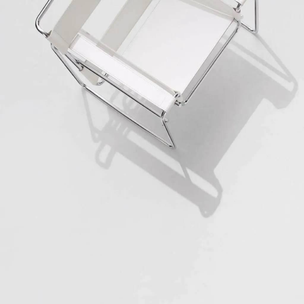 Das Gestell des Wassily Sessels ist aus nahtlos geformtem Rundrohrstahl, das hochglänzend verchromt wurde, gefertigt. Die Lederschlingen, die Sitzfläche sowie Arm- und Rückenlehnen bilden, bestehen aus feinstem Leder. Wenn Sie den Wassily Sessel von Knoll auf einem harten oder empfindlichen Boden nutzen möchten, werden die Beine des Lounge Chairs mit Kunststoffgleitern versehen.