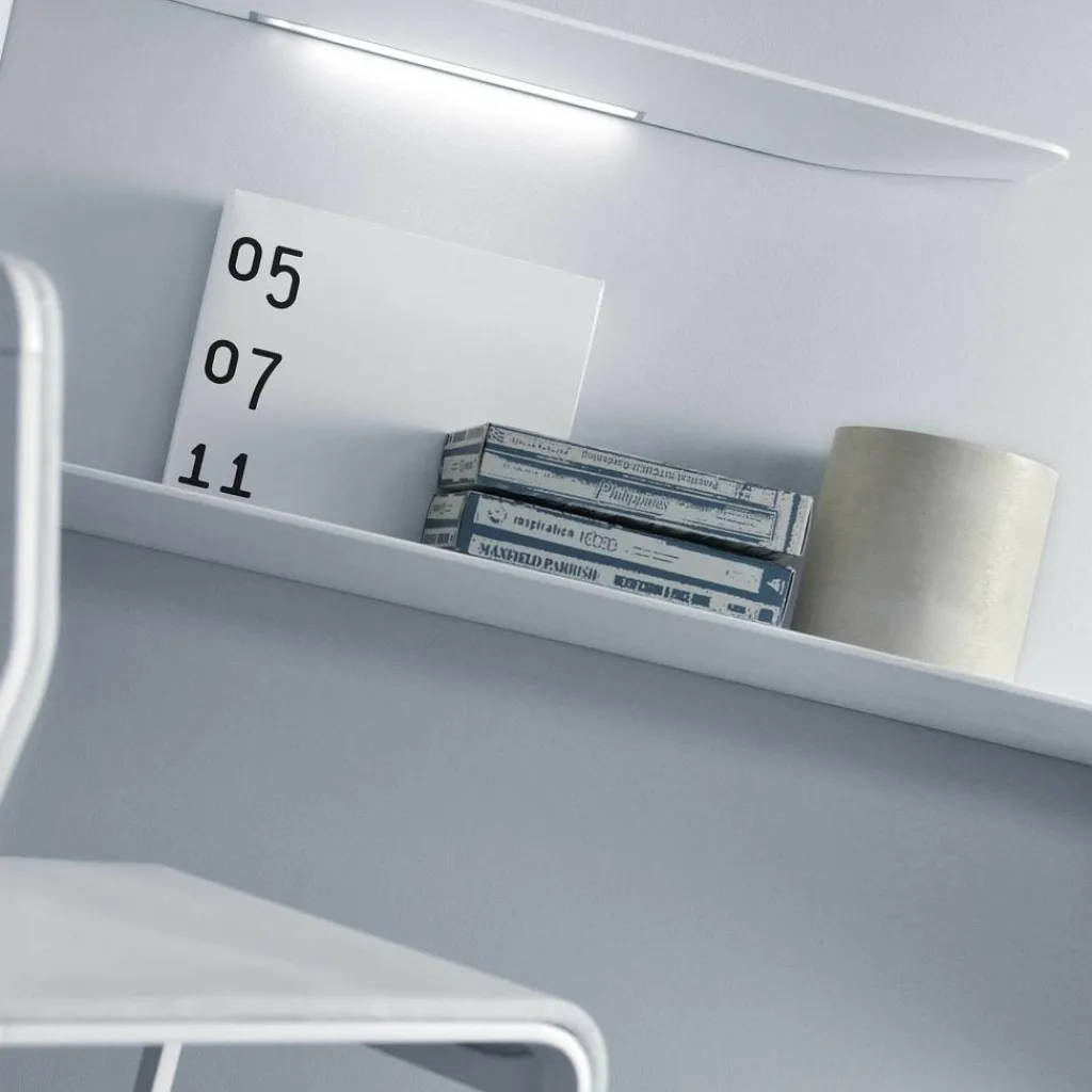 Die Tischplatte bietet ausreichend Platz für einen Computer und Arbeitsutensilien. Besonders praktisch: die integrierte Beleuchtung des Mamba Wandsektretärs. Darüber können ebenfalls kleinere Gegenstände abgelegt werden.