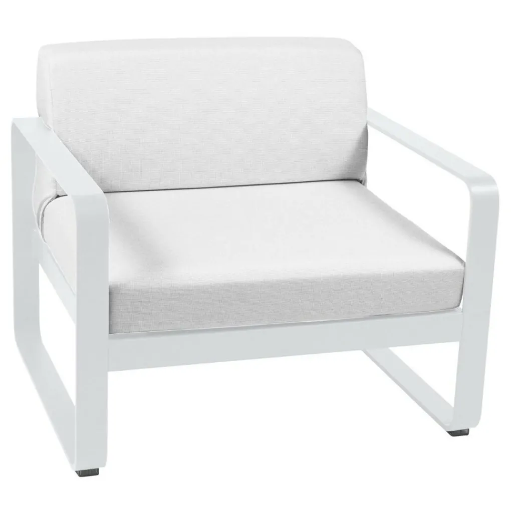 Mit Abmessungen von 85 x 75 cm und einer Höhe von 56 cm ist der Bellevie Outdoor-Sessel vielseitig in jedem Raum oder auf der Terrasse und dem Balkon einsetzbar. Ob Sie den Sessel als Eyecatcher in ein bestehendes Raumkonzept integrieren oder als Kombination neue Einrichtungsideen realisieren, er passt sich mit dem bewusst zurückhaltenden Design und klaren Linien sowie einer variablen Farbgestaltung vielen Einrichtungsstilen an. Das schlichte Aluminiumgestell wirkt durch die Kombination mit der edlen weißen Polsterung aus weichem, griffigem Gewebe modisch und trotzdem dezent. Das exklusive Fermob-Gewebe ist maschinenwaschbar, atmungsaktiv, outdoorgeeignet und verspricht lange Haltbarkeit.