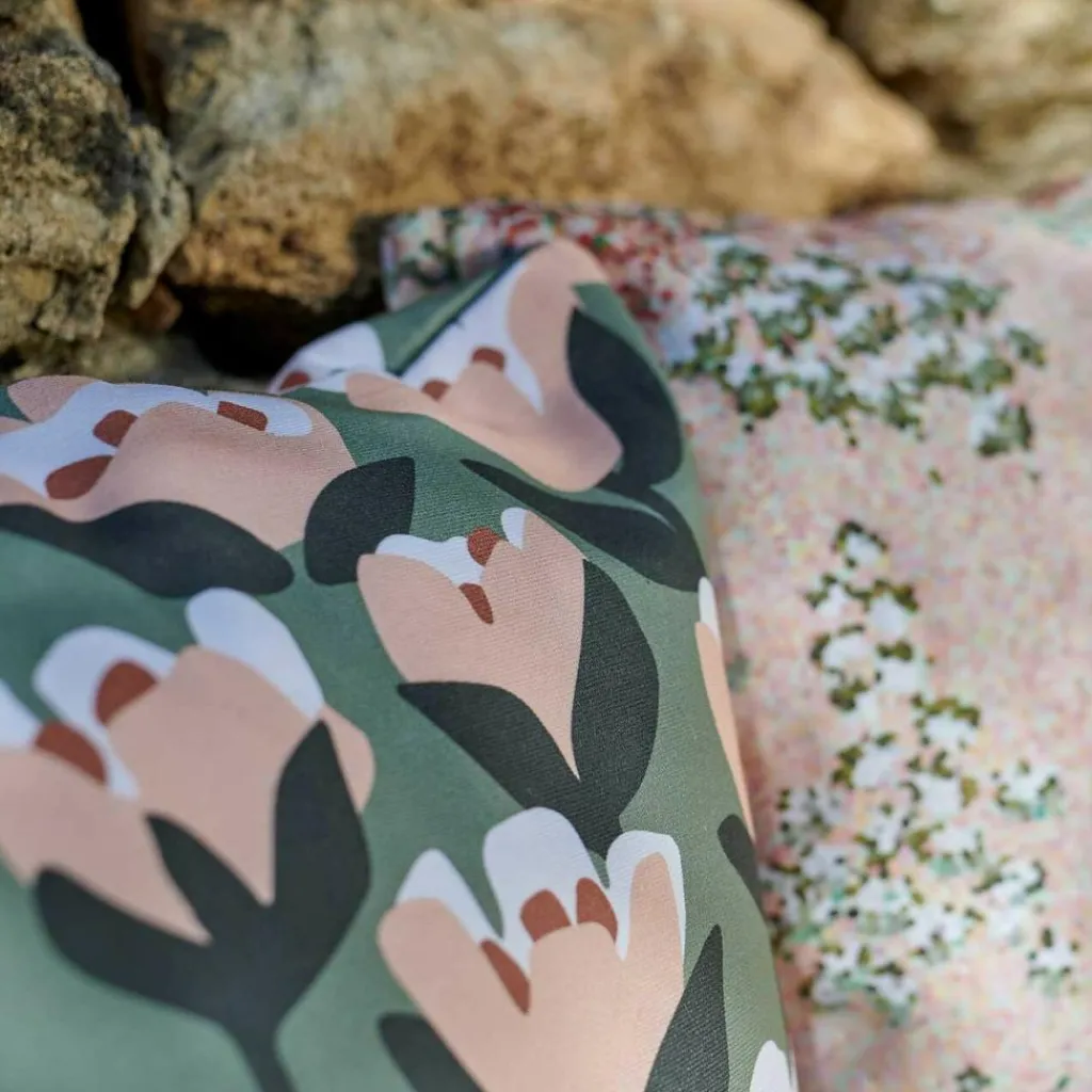 Das Bouquet Sauvage Pixels Outdoor-Kissen 44x44xm von Fermob ist ein hübsches Kissen mit floralem Print für den Außenbereich.