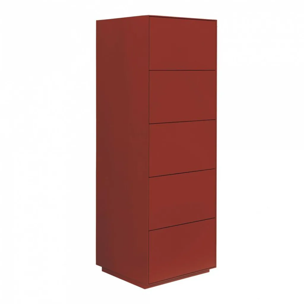 Das subtil elegante Nex Box Highboard mit 5 Schubladen H 125cm ist 125cm hoch. Auf der Grundfläche von 40 x 48 cm bieten die fünf Schubladen des Möbelstückes großzügigen Stauraum. Der aus robusten MDF-Platten gefertigte Schubladenschrank erlaubt es, Ordnung im privaten und beruflichen Lebensraum zu schaffen, ohne dabei auf Stil und Ästhetik verzichten zu müssen. So kann dieses Highboard nicht nur im Büro oder Geschäftsbereich zum Einsatz kommen, sondern auch das Wohn- oder Schlafzimmer veredeln. Im Flur bieten die leicht zu bedienenden Schubladen ausreichend Platz für allerlei Krimskrams oder Accessoires.