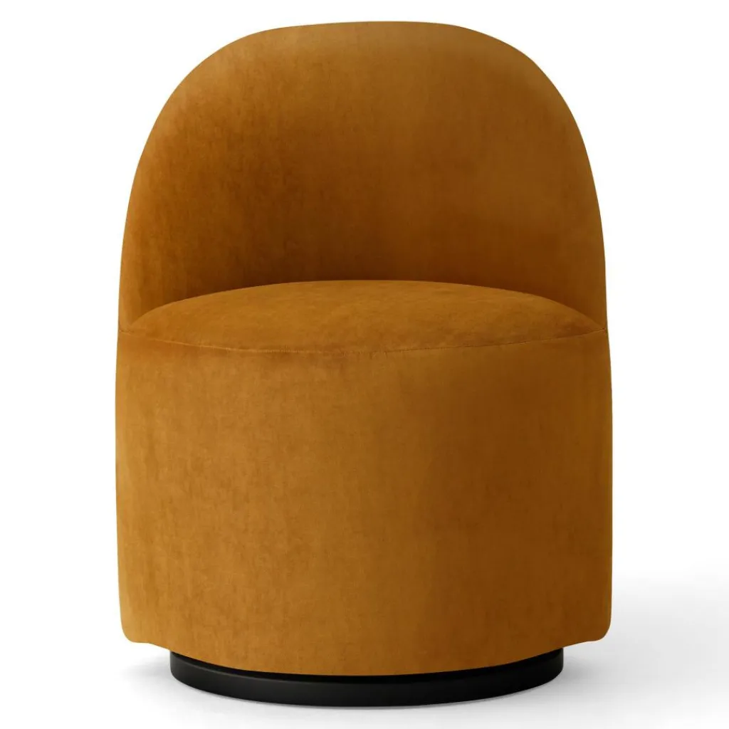 Der Tearoom Side Chair Samt drehbar wurde von Nick Ross für die Marke Audo entworfen. Er erweitert die Tearoom-Kollektion, die aus Stühlen und Armlehnstühlen mit verschiedenen Bezügen besteht.