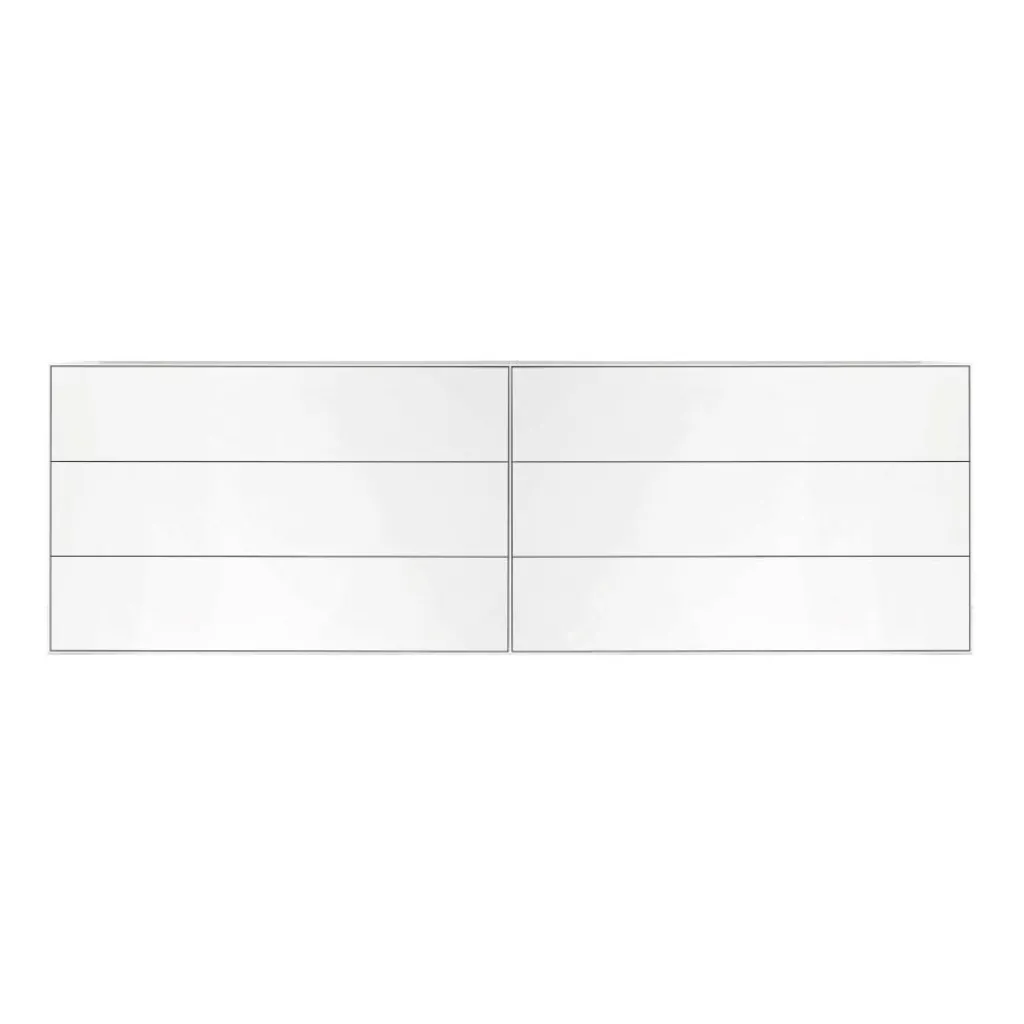 Das Nex Pur Box Sideboard/Kommode 240×77.5cm besitzt eine Breite von 240cm und eine Tiefe von 48cm. Mit einer Höhe von 77,5cm ermöglicht es nicht nur eine Nutzung als verschlossener Stauraum, sondern auch als funktionelle Abstellfläche für Bücher, Dekorationsobjekte oder Blumenvasen. Das Sideboard ist aus weißen, matt lackierten MDF-Platten gearbeitet. Die Kombifüße sind aus weichem Gummi gefertigt und erlauben das Abstellen der subtil wirkenden Kommode auch auf empfindlichen Oberflächen. Das Sideboard ist mit drei Schubladen zum Ausziehen versehen, die viel Platz für Kleidung, Accessoires, Unterlagen oder Krimskrams bieten. Zudem bilden diese ein attraktives Fugenbild, das einen minimalistischen Blickfang in Ihren vier Wänden bietet.