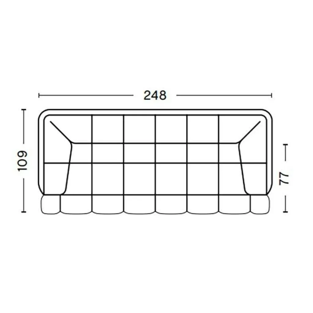 Mit einer Breite von 248cm bietet dieses Quilton-Sofa Platz für bis zu drei Personen. Das bequeme Sitzmöbel ist 109cm tief. Seine Sitzhöhe misst 41cm. Die Höhe ist 72cm. Das Quilton 3-Sitzer Sofa 248x109x72cm wiegt 85kg. Daneben ist aus der Quilton-Kollektion ein 3-Sitzer-Sofa mit anderen Abmessungen erhältlich.