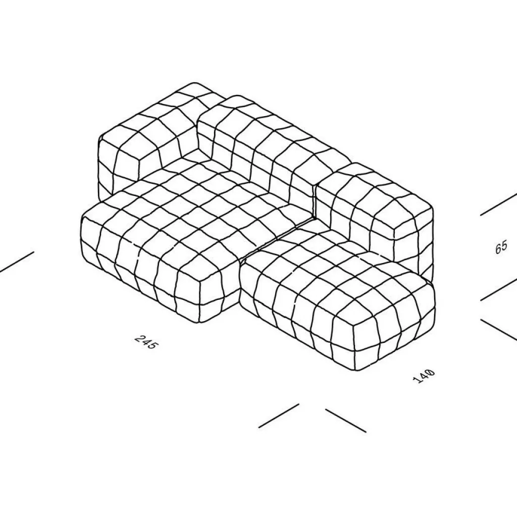 | Abmessungen | Breite: 245cm Höhe: 65cm Tiefe: 140cm Sitzhöhe: 39cm Höhe Armlehne: 56.5cm |