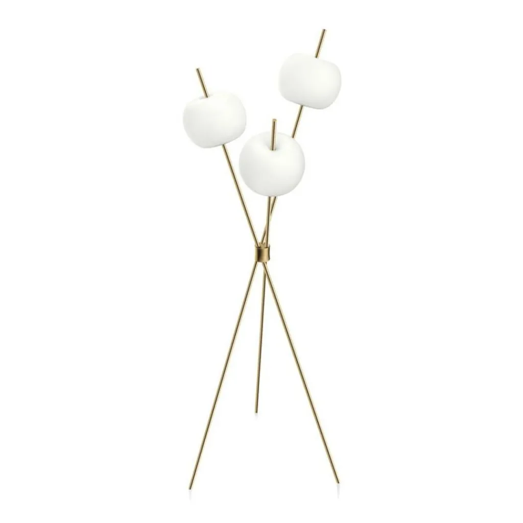 Die elegante Kushi LED Stehleuchte H 140cm ist in drei verschiedenen Farbvarianten erhältlich und Teil einer Kollektion weiterer Leuchten. Die aus Metall und handgeblasenem doppelwandigen Opalglas hergestellte Leuchte hat die Maße von 140cm in der Höhe und einen Durchmesser von 56cm. Der japanische Begriff „Kushi“ heißt auf Deutsch „Spieß“ und beschreibt damit die Form der Leuchte. Auf jedem der drei miteinander verbundenen Spieße von unterschiedlicher Länge befindet sich ein runder Leuchtenkopf, der von den Streben durchstoßen wird. Das dabei entstehende warmweiße Licht wird in alle Richtungen abgestrahlt und kann mittels Dimmer auf die gewünschte Helligkeit eingestellt werden. Die für den Betrieb der Kushi LED Stehleuchte H 140cm erforderlichen drei LED-Leuchtmittel sind in der Leuchte fest verbaut und können nicht ausgetauscht werden. Die etwa in der Nähe einer Sitzecke oder Sofalandschaft verwendbare Leuchte ist mit einem feuchten Tuch einfach zu reinigen. Das nah abstrahlende Licht ermöglicht auch die Verwendung der Leuchte als Leselicht.