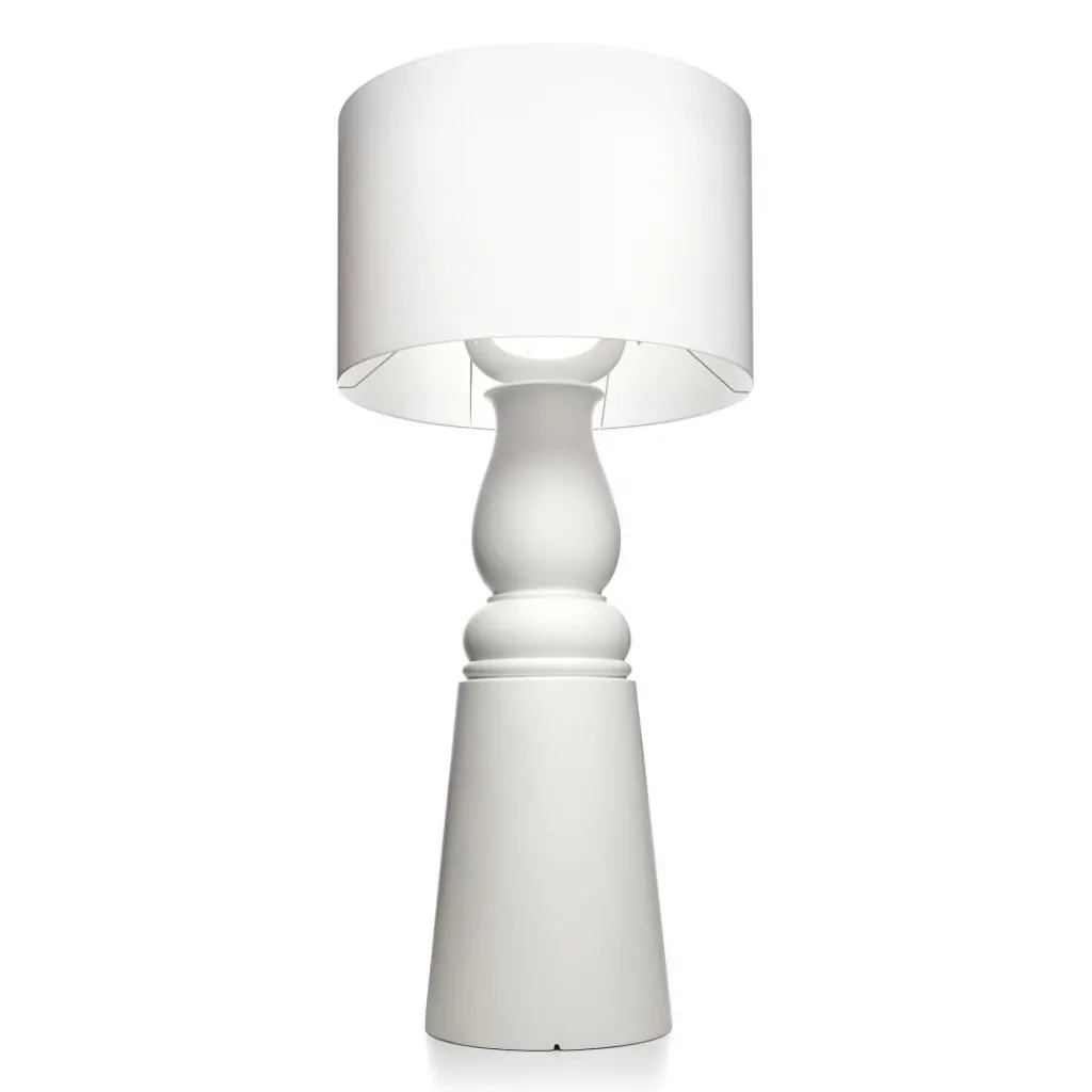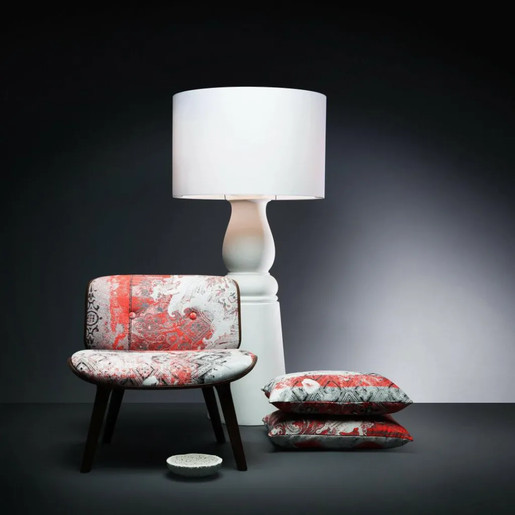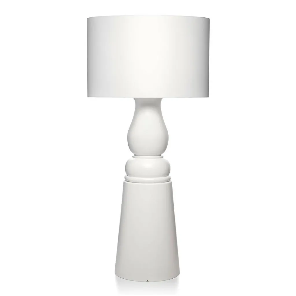 Die Farooo Small Stehleuchte spielt mit verschiedenen Formen. Auf den ersten Blick sieht sie aus wie eine überdimensionale Tischleuchte. Markenzeichen ist der in sanften Rundungen gestaltete Fuß. Darauf sitzt ein zylinderförmiger Schirm. Kaum eingeschaltet, verbreitet die Farooo Small Stehleuchte wohnliche Atmosphäre. Sie eignet sich für jedes Wohnzimmer, wo sie als Fernseh- und Leseleuchte dient. Jedoch auch im Büro oder Wintergarten macht sie eine ausgezeichnete Figur. Die Basis besteht aus langlebigem Fiberglas, der Leuchtenschirm aus Kunststoff/Viskose-Laminat.
