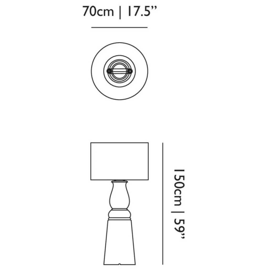 In dem 300 cm langen Kabel der Farooo Small Stehleuchte ist der Schalter integriert, mit dem sich die Leuchte auch dimmen lässt. Die Leuchte ist 150 cm hoch. Der Durchmesser des Schirms beträgt 70 cm. Der Fuß ist mit einem Durchmesser von 39 cm deutlich schlanker. Die Leuchte benötigt zwei Leuchtmittel mit einer E27-Fassung. Sie können unter Zubehör mitbestellt werden.