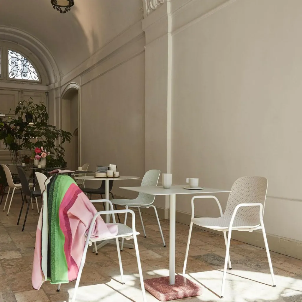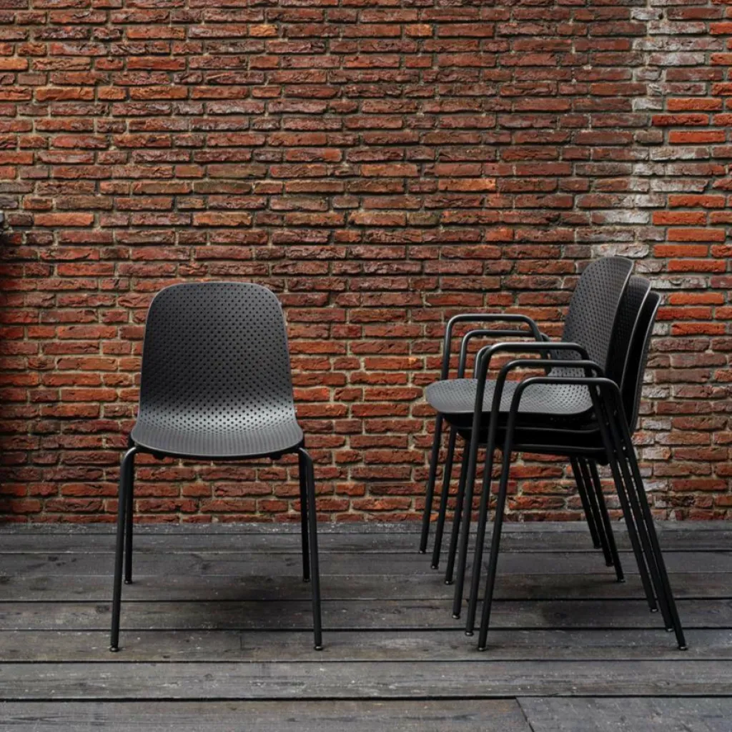 Der 13Eighty Armlehnstuhl verdankt seinen ungewöhnlichen Namen der Anzahl der vielen Löcher, mit denen die ergonomisch geformte Sitzschale aus Polypropylen perforiert ist. Diese kleinen Öffnungen schaffen durch ihre unterschiedlichen Größen eine eigenständige, transparente Ästhetik. Darüber hinaus sorgt die so entstehende Luftzirkulation für ein angenehmes Sitzgefühl. Den stapelbaren 13Eighty Armlehnstuhl können Sie auch bei schlechtem Wetter auf dem Balkon oder der Terrasse stehen lassen. Das Stahlrohrgestell ist witterungsbeständig lackiert und das Regenwasser fließt durch die perforierte Sitzfläche ungehindert ab.