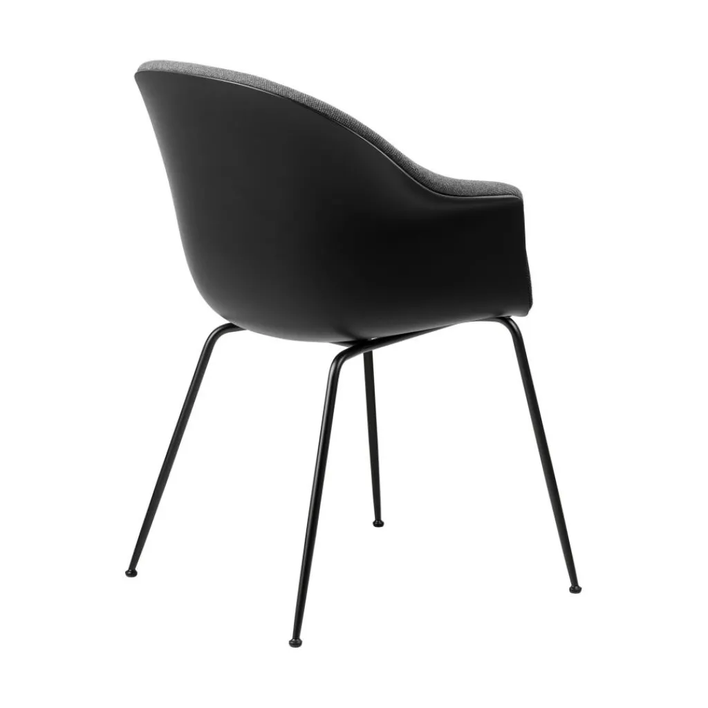 Der Bat Schalenstuhl Frontpolsterung Gestell konisch wurde von GamFratesi für die Marke Gubi entworfen. Er gehört einer Reihe von Sitzmöbeln an, die mit auffälligen Sitzschalen beeindrucken. Ihre Form ist vom Umriss einer Fledermaus inspiriert. Damit erhält der klassische Schalensitz einen modernen Touch.
