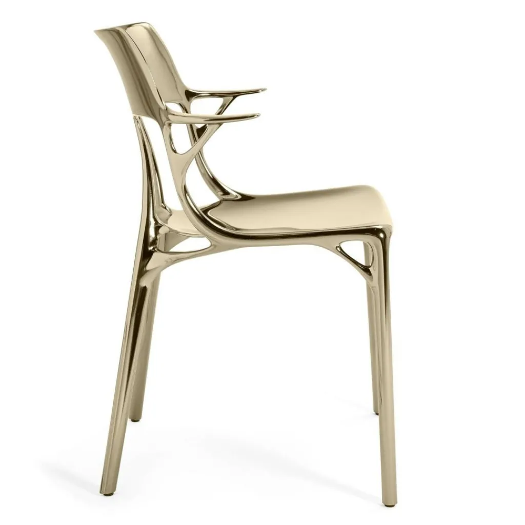 Der AI Metal Armlehnstuhl wurde von Philippe Starck für die Marke Kartell entworfen. Das außergewöhnliche Modell wurde im Jahr 2020 mit dem begehrten Red Dot Award ausgezeichnet.