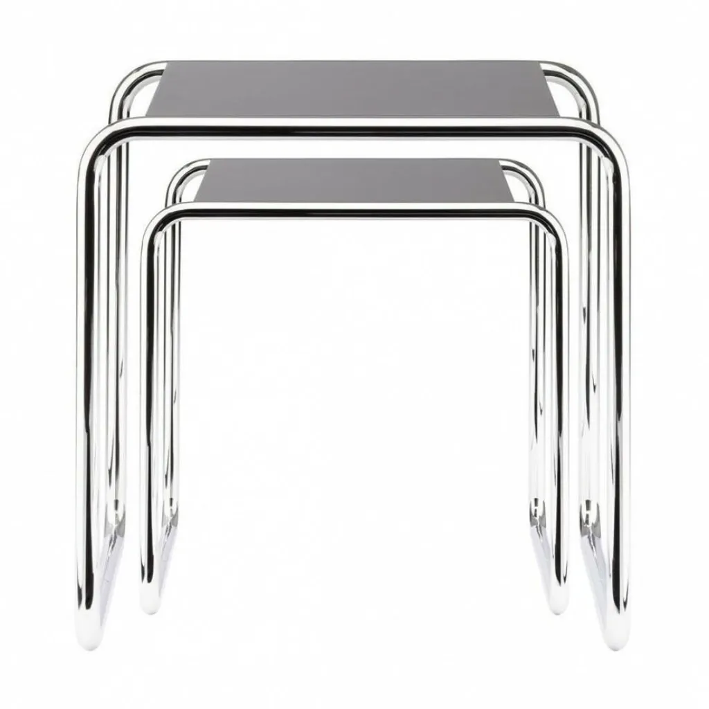 Hilfreich für Breuer war bei der Entwicklung des B 9 Beistelltisches die Kooperation mit dem ebenfalls in Dessau ansässigen Flugzeugbauers Junkers. Die Idee Stahlrohr für Möbel zu verwenden kam Breuer als er sein Fahrrad betrachtete. Einen Partner fand er mit der Firma Mannesmann, die bereits 1885 ein Verfahren zum Kaltziehen von Stahlrohren entwickelt hatte. So entstand schließlich der B 9 Beistelltisch 2er Set Buche als Teil der Serie Thonet B9.