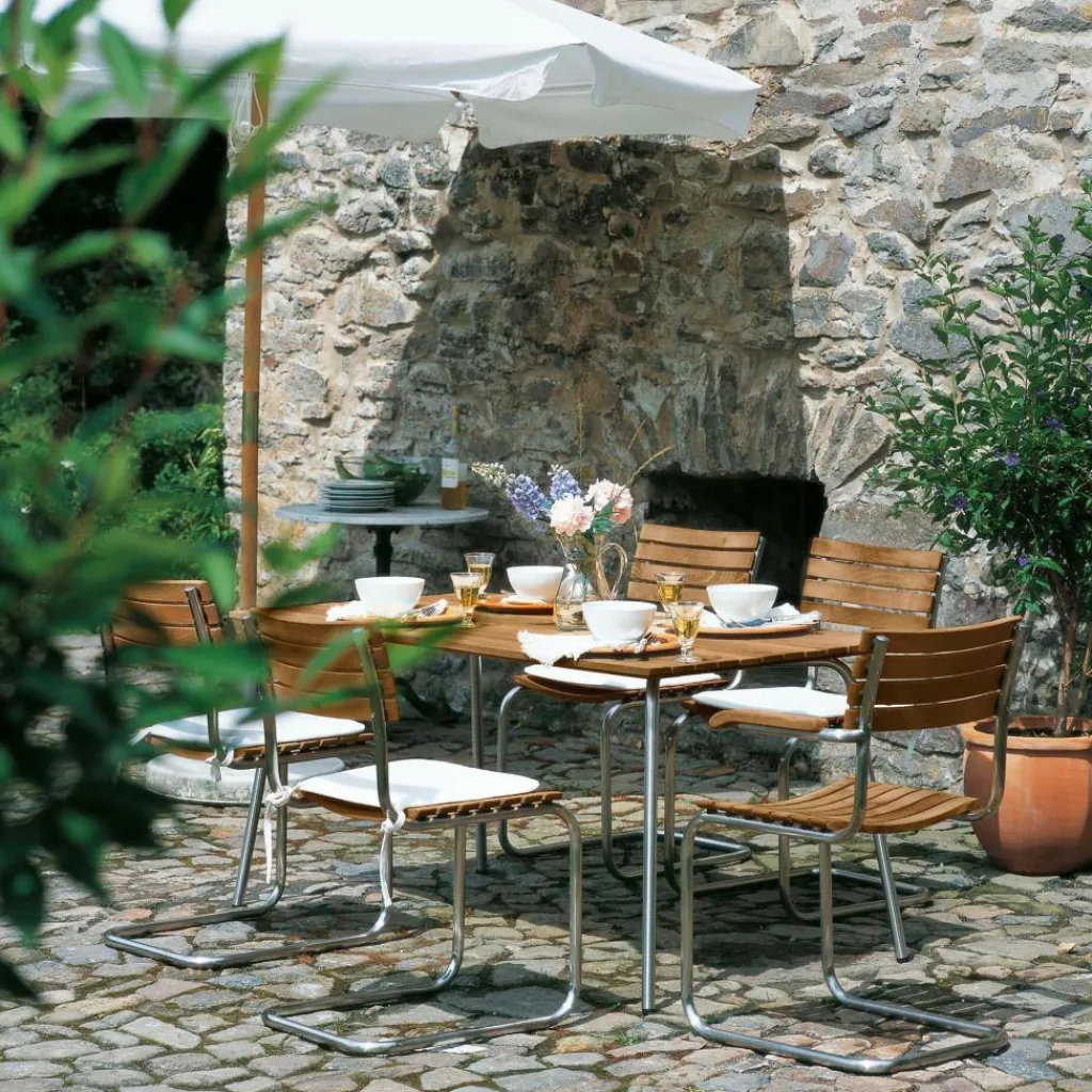 Ob auf dem Balkon, der Terrasse oder mitten im Garten – der Thonet S 1040 Gartentisch Holz bietet ausreichend Platz für Familie und Freunde. Geschickt zusammengestellt mit einer Vielzahl passender Designerstücke aus unserem Shop betont der Thonet Gartentisch modisches Vergnügen und sorgt für zuverlässige Lebendigkeit bei jedem Beisammensein. Je nach Produktvariante besitzt der hochwertige S 1040 Gartentisch von Thonet eine Abmessung von 78×78 cm oder 150×78 cm. Die Höhe des Holztisches liegt optimal bei 72 cm.